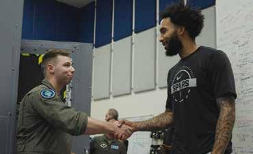 De acuerdo a boletín oficial informativo de la empresa Spurs Sports and Entertainment (SS&E), se dijo qué orgullosamente se cumplieron los objetivos con la empresa financiera USAA (patrocinadores de diversos eventos con Spurs), para este principio de año visitar la base aérea de Joint Base San Antonio Lackland USAF, ubicada en el corazón del sector oeste.