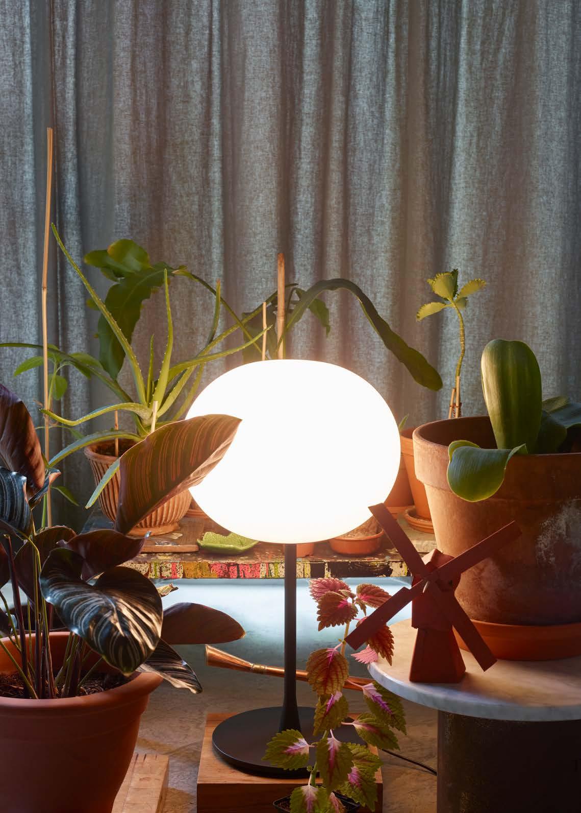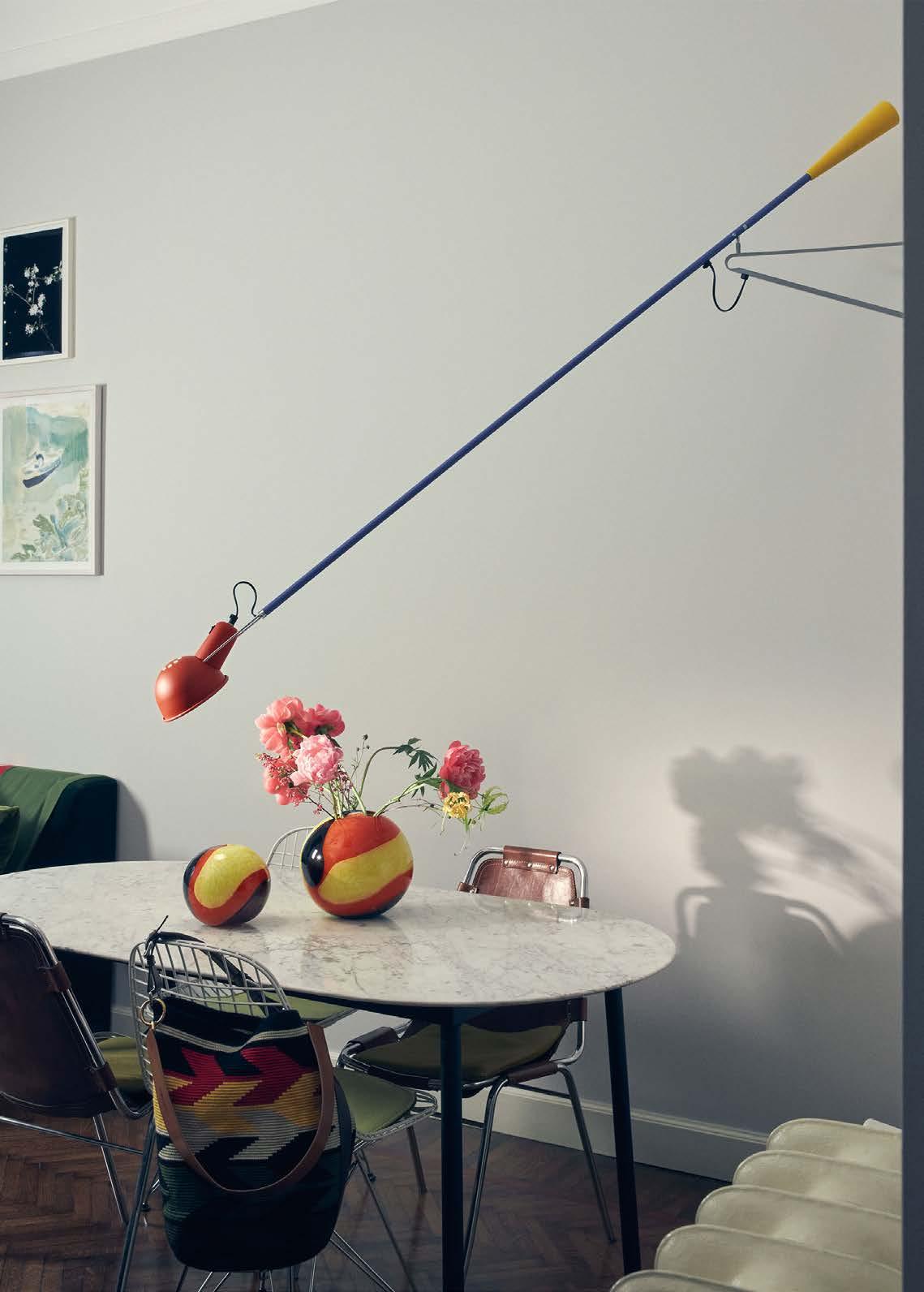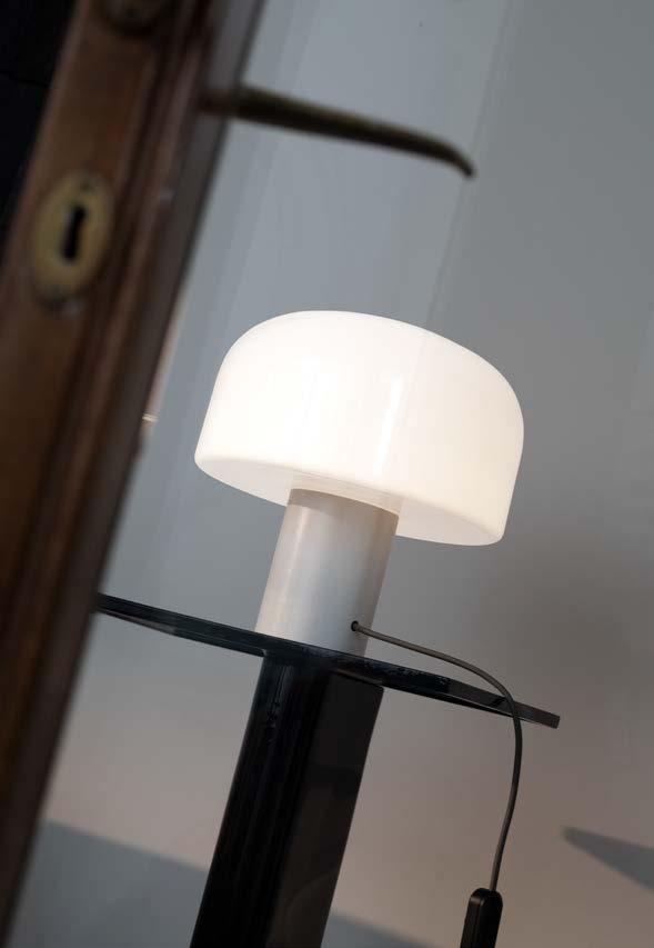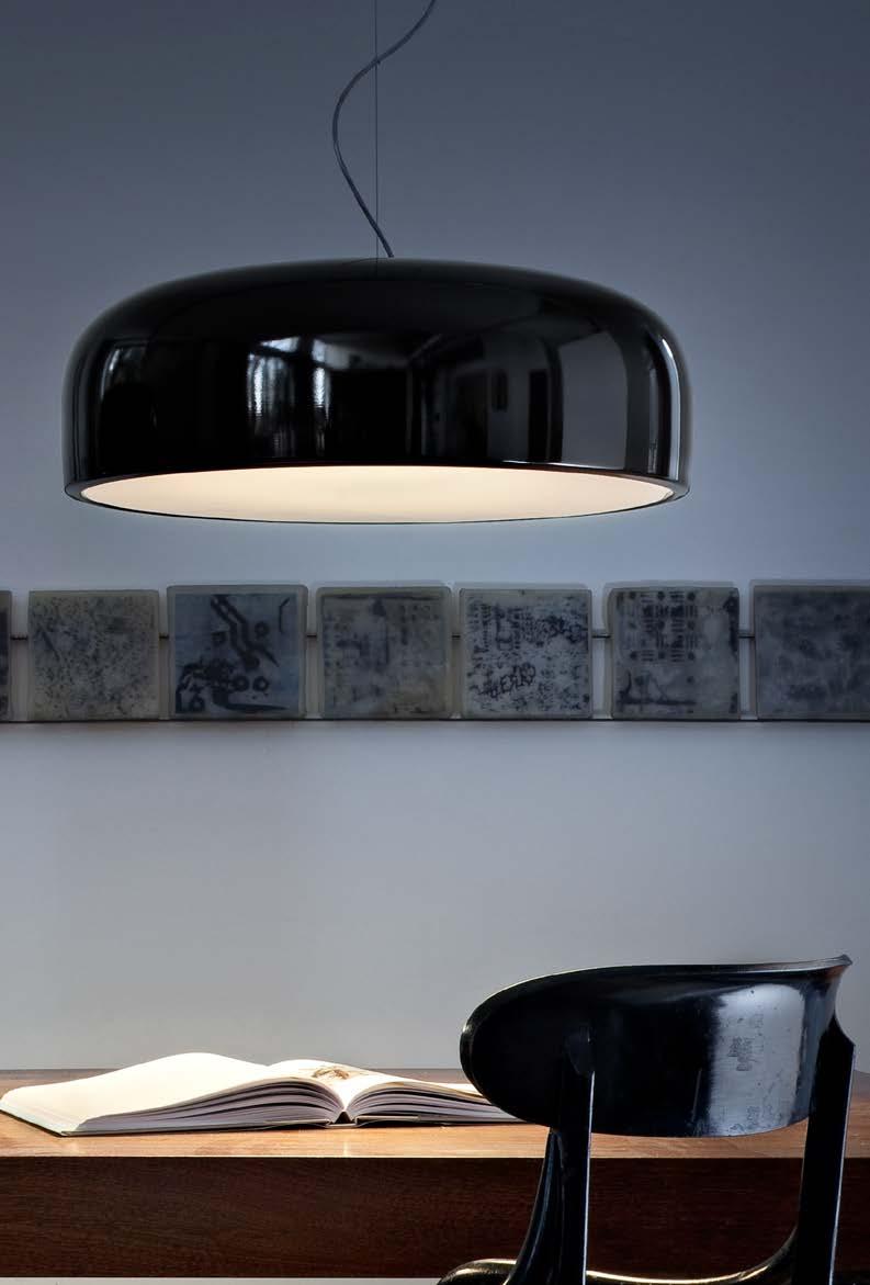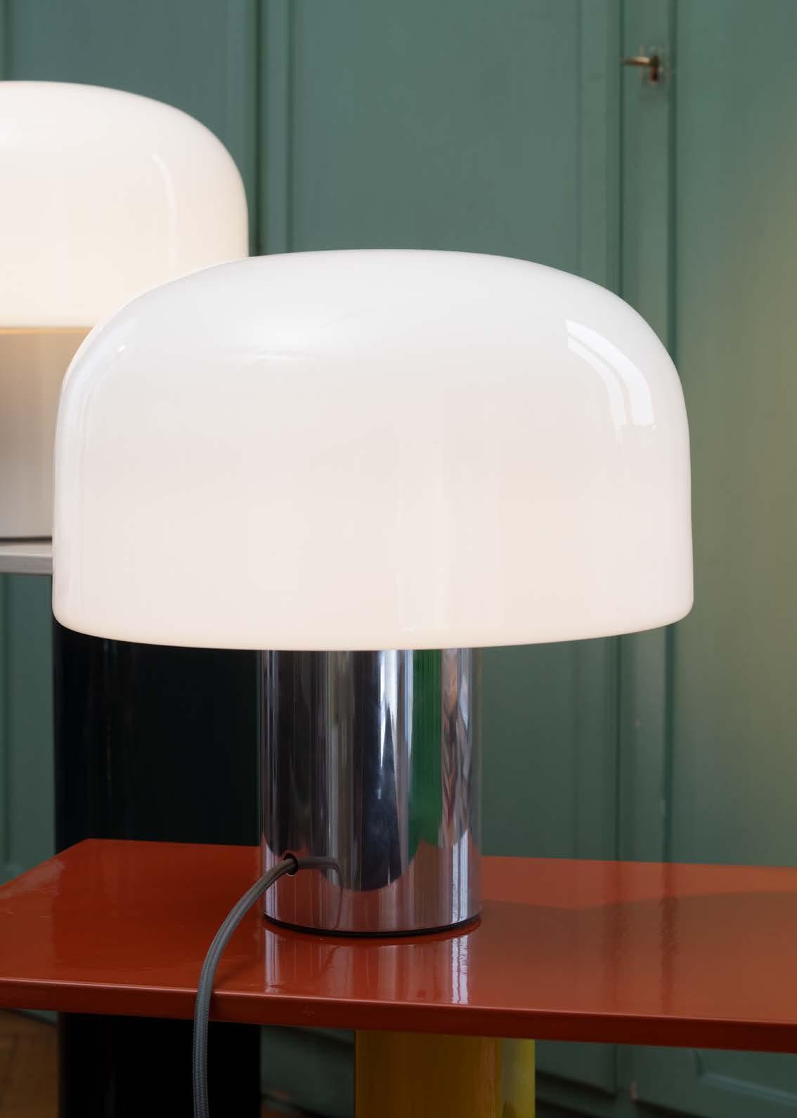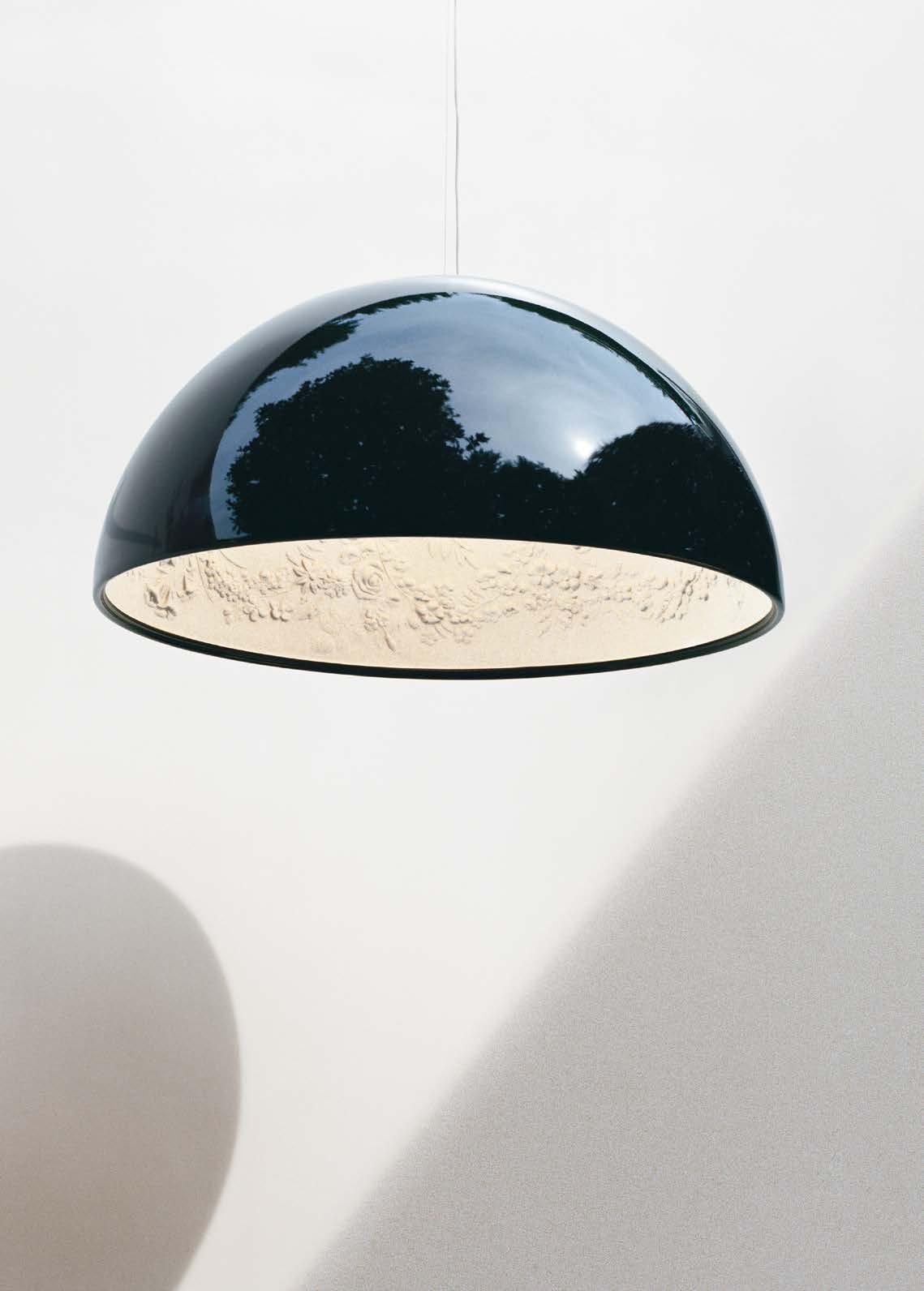 The Snoopy original with the black shade grew into a collection featuring green and orange versions. The latest addition, with a navyblue shade, was inspired by a hue used by Achille and Pier Giacomo on their Sciuko lamp for Flos in 1966.
