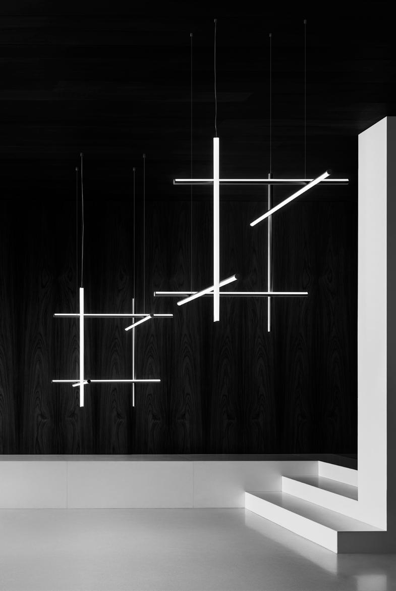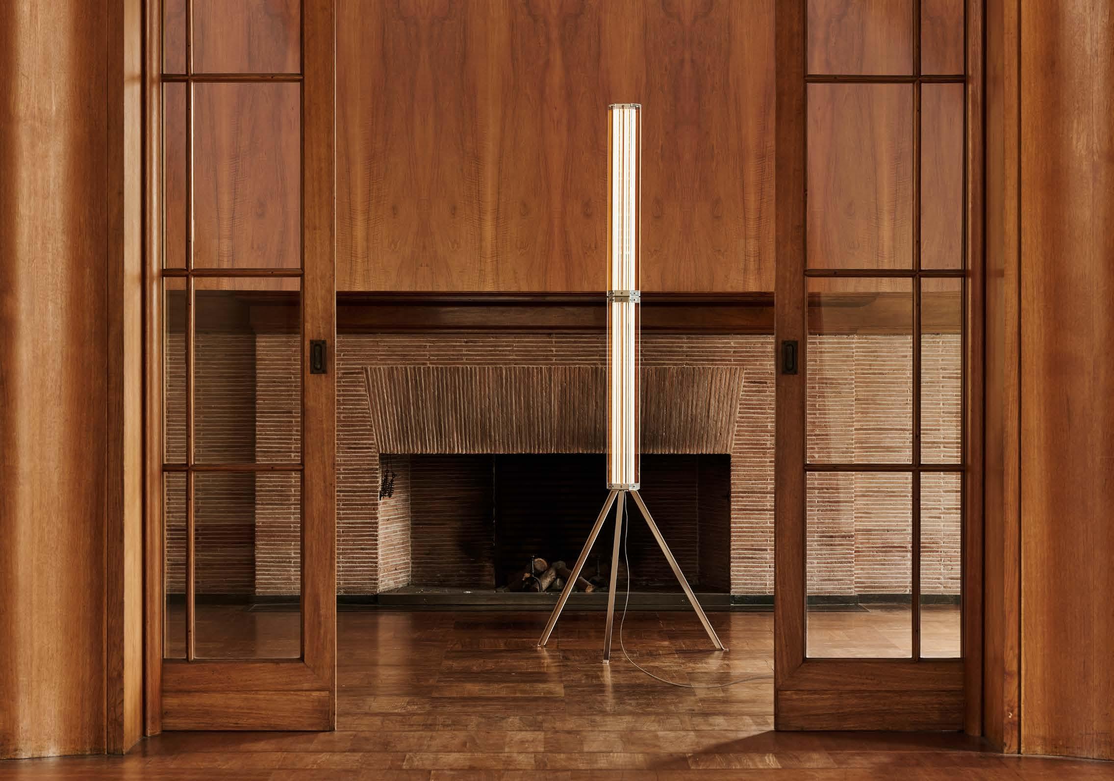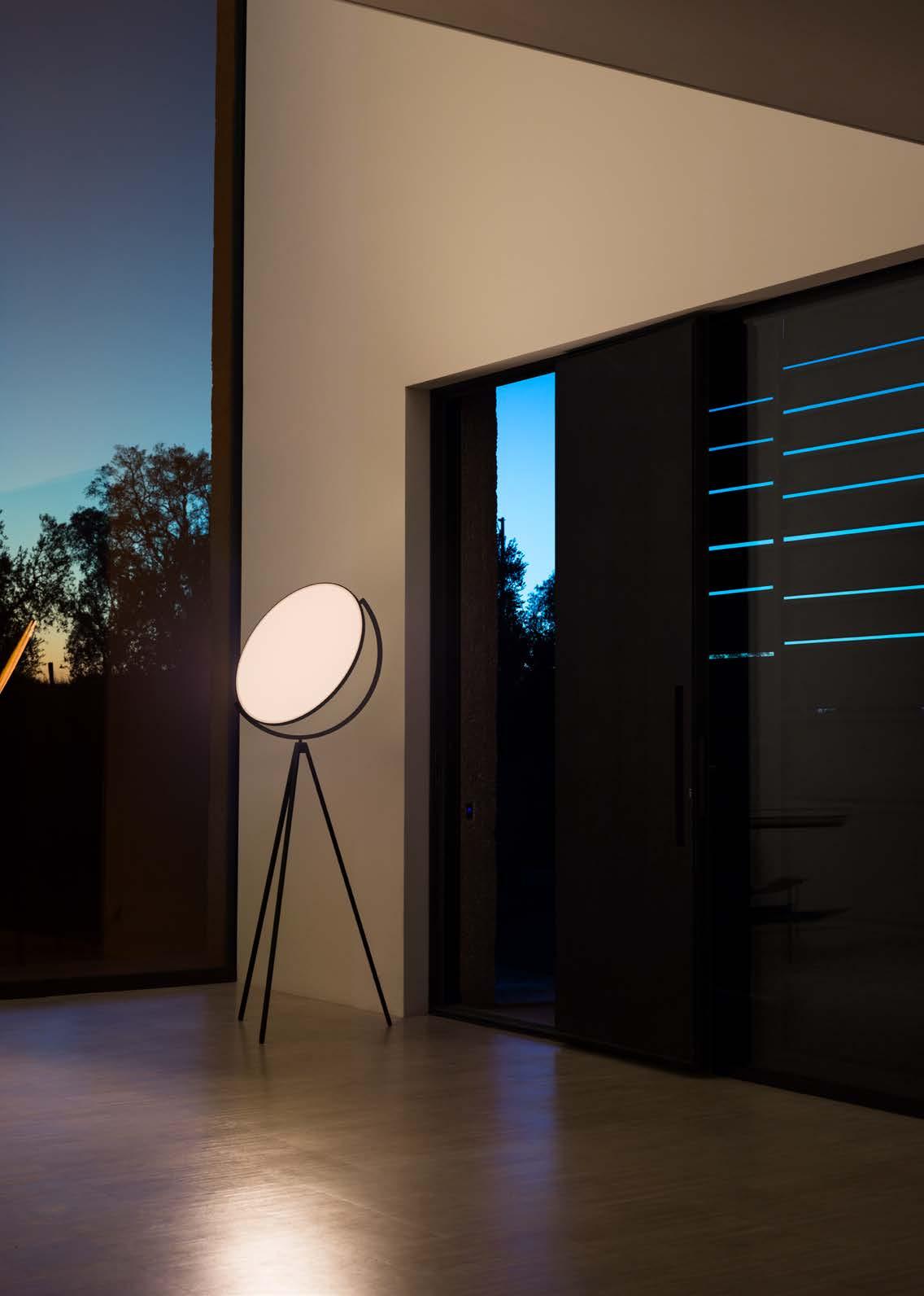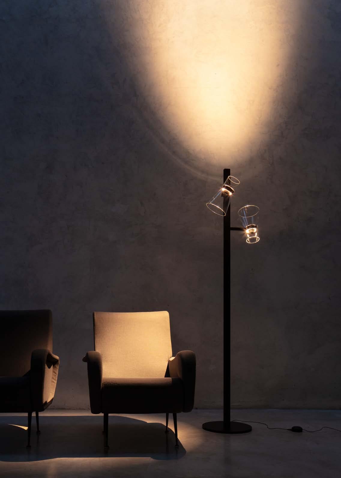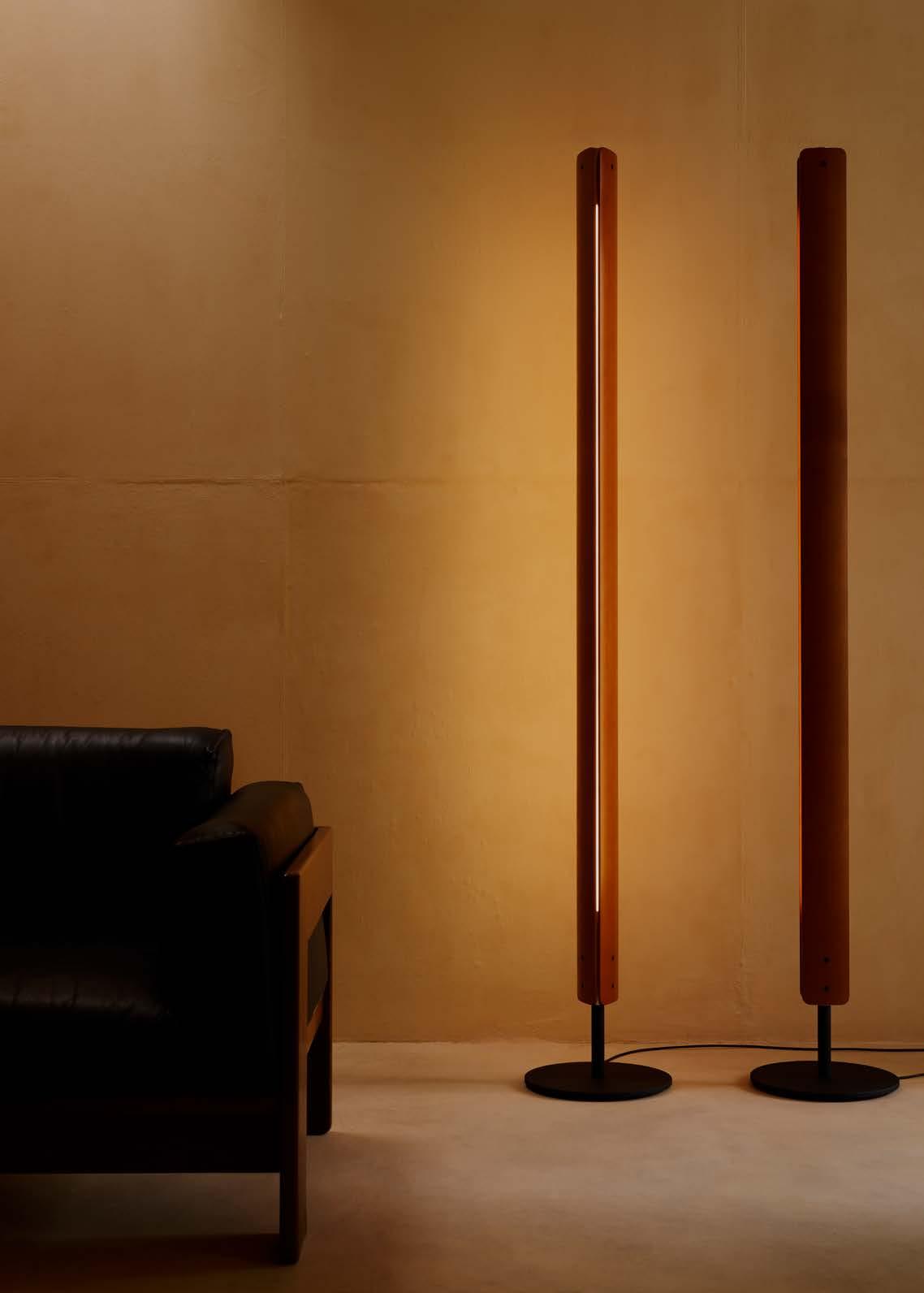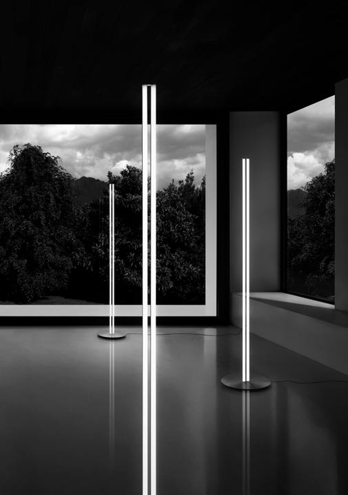 A collection that blends technology and design, Emi features a trio of light modules encased within a triangular pole, its powerful but gentle lighting emitted from a body that remains nearly invisible.