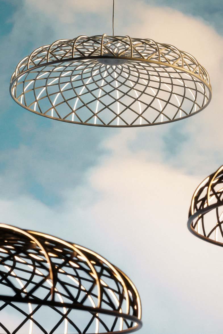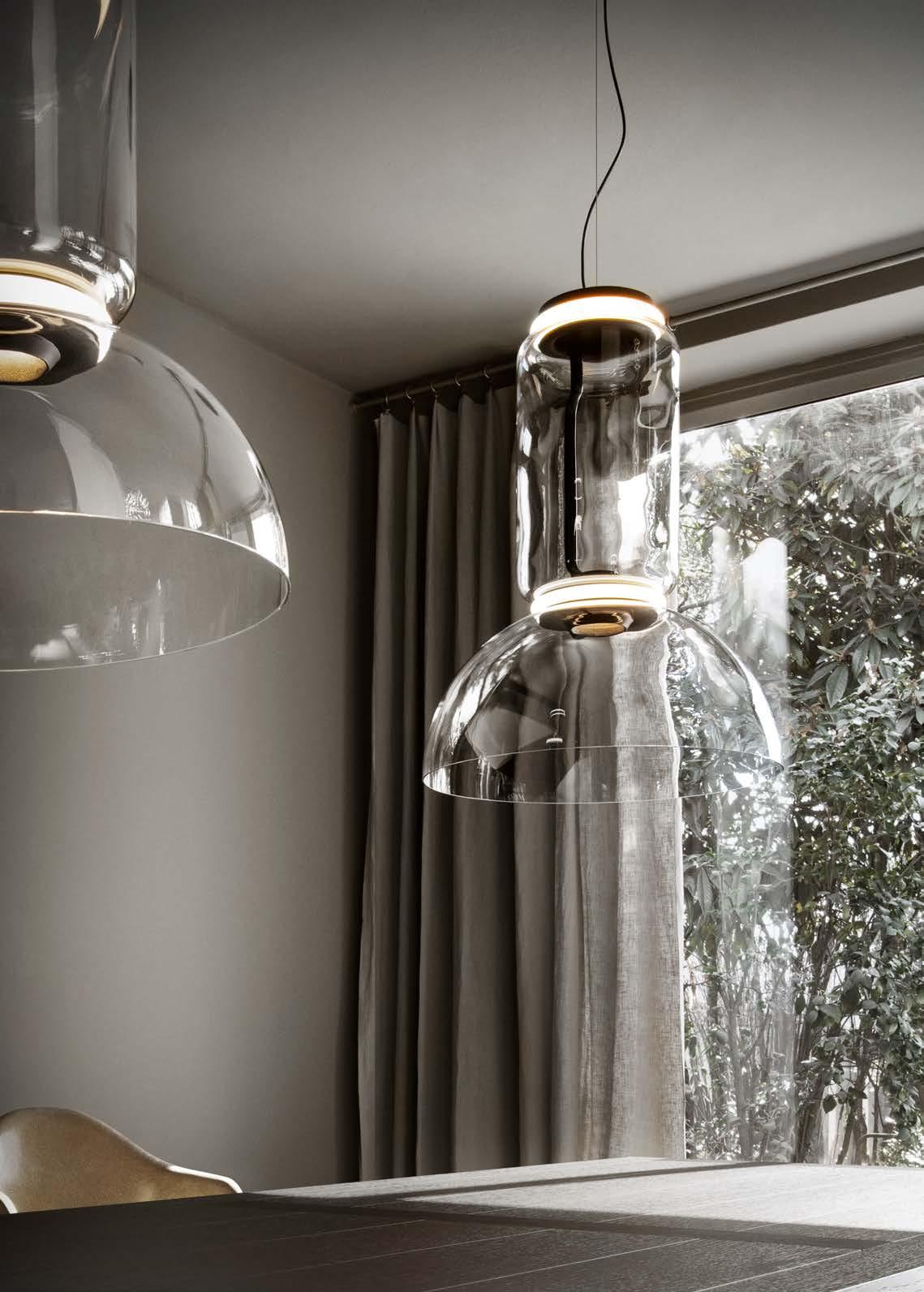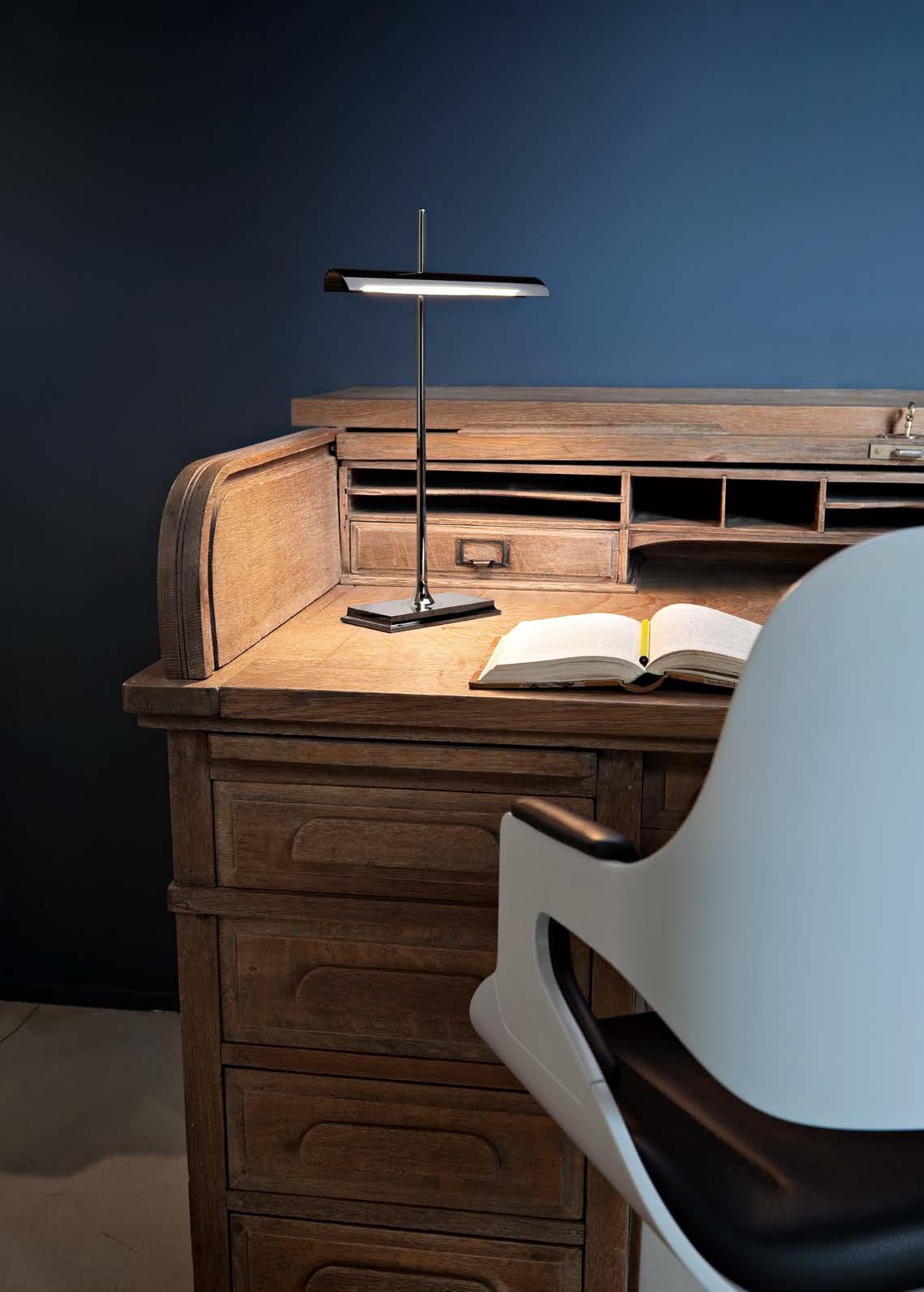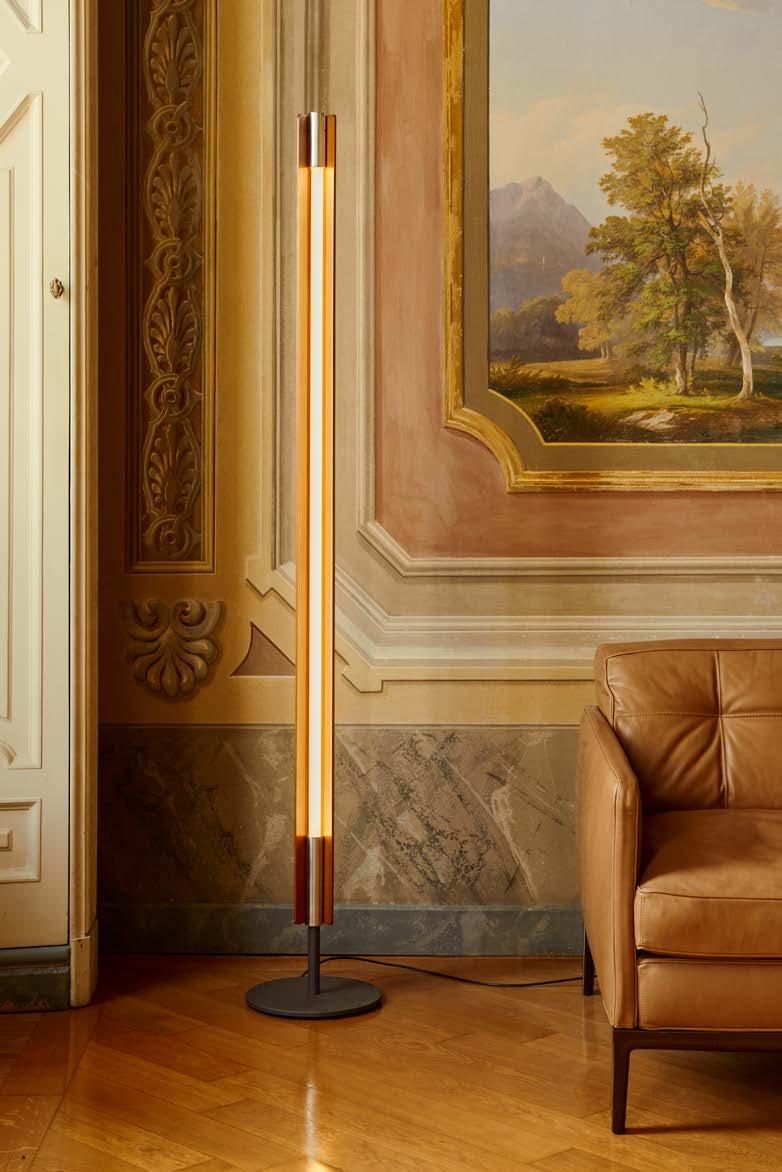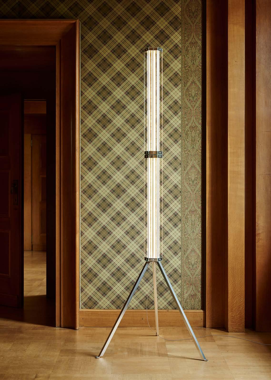 A collection that blends technology and design, Emi features a trio of light modules encased within a triangular pole, its powerful but gentle lighting emitted from a body that remains nearly invisible.