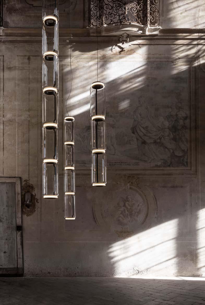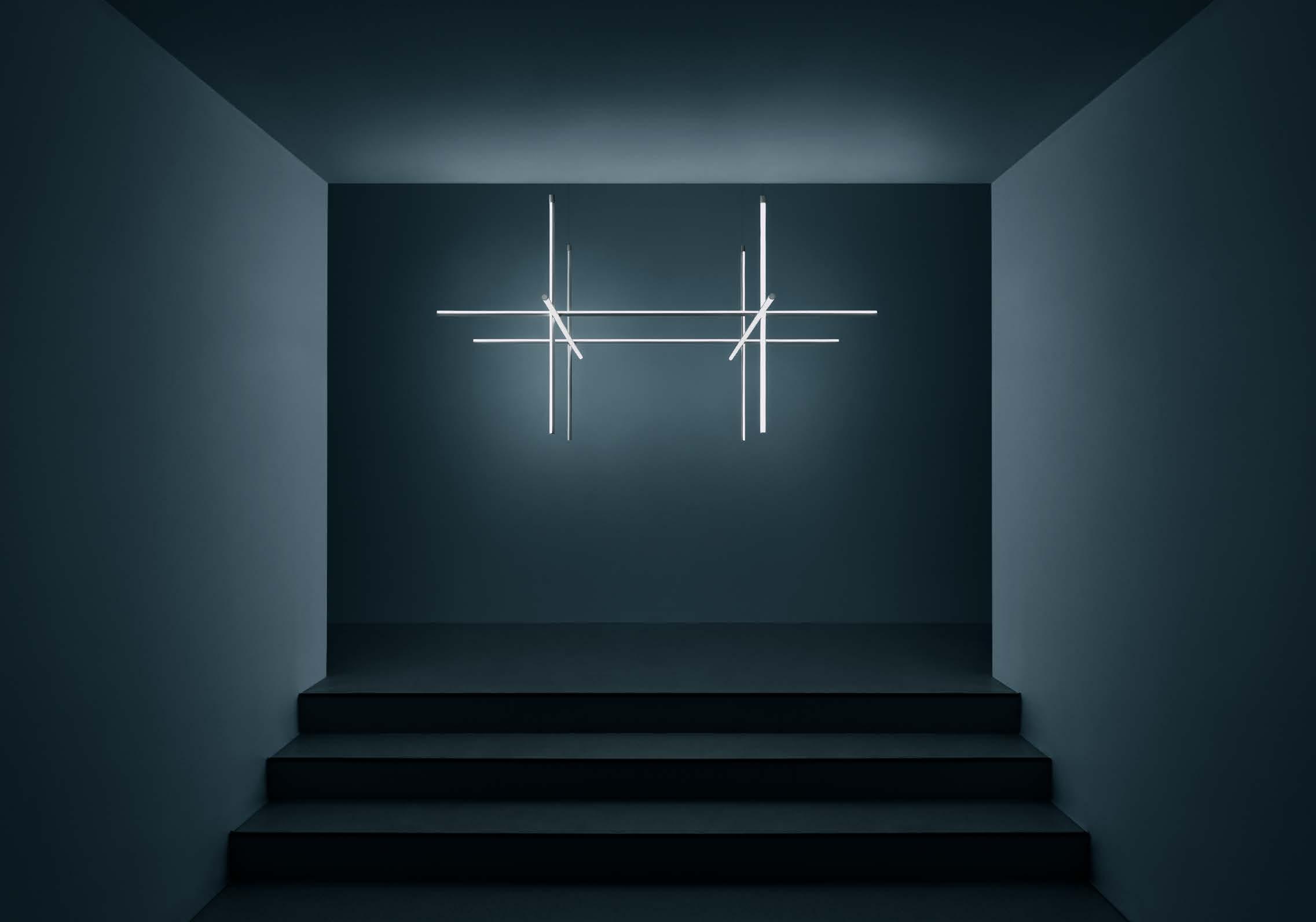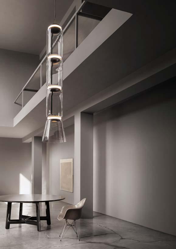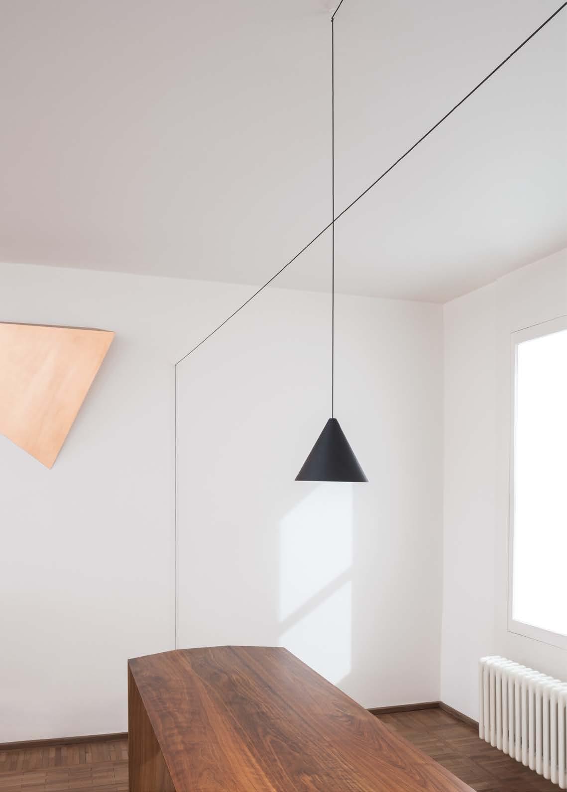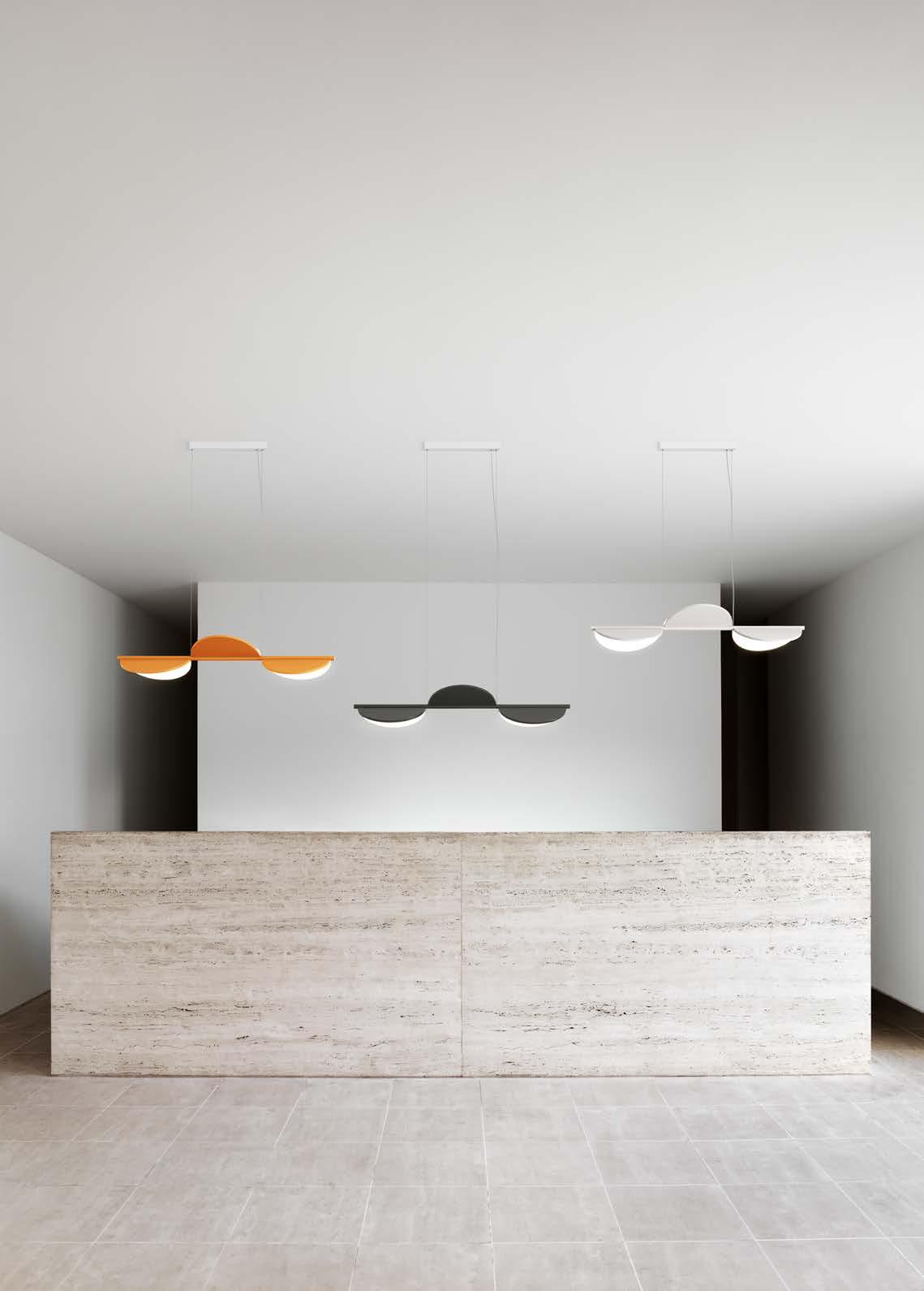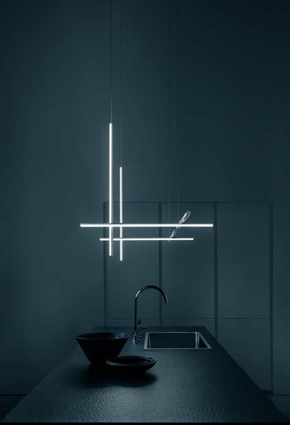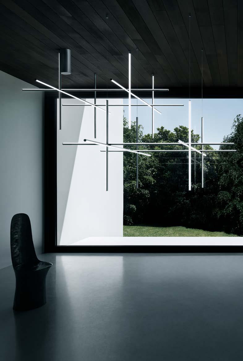Eine Kollektion, die Technologie und Design vereint. Emi weist ein Trio von Lichtmodulen auf, die in einer dreieckigen Stange eingeschlossen sind, deren leistungsstarke, aber sanfte Beleuchtung von einem Körper ausgeht, der beinahe unsichtbar bleibt.