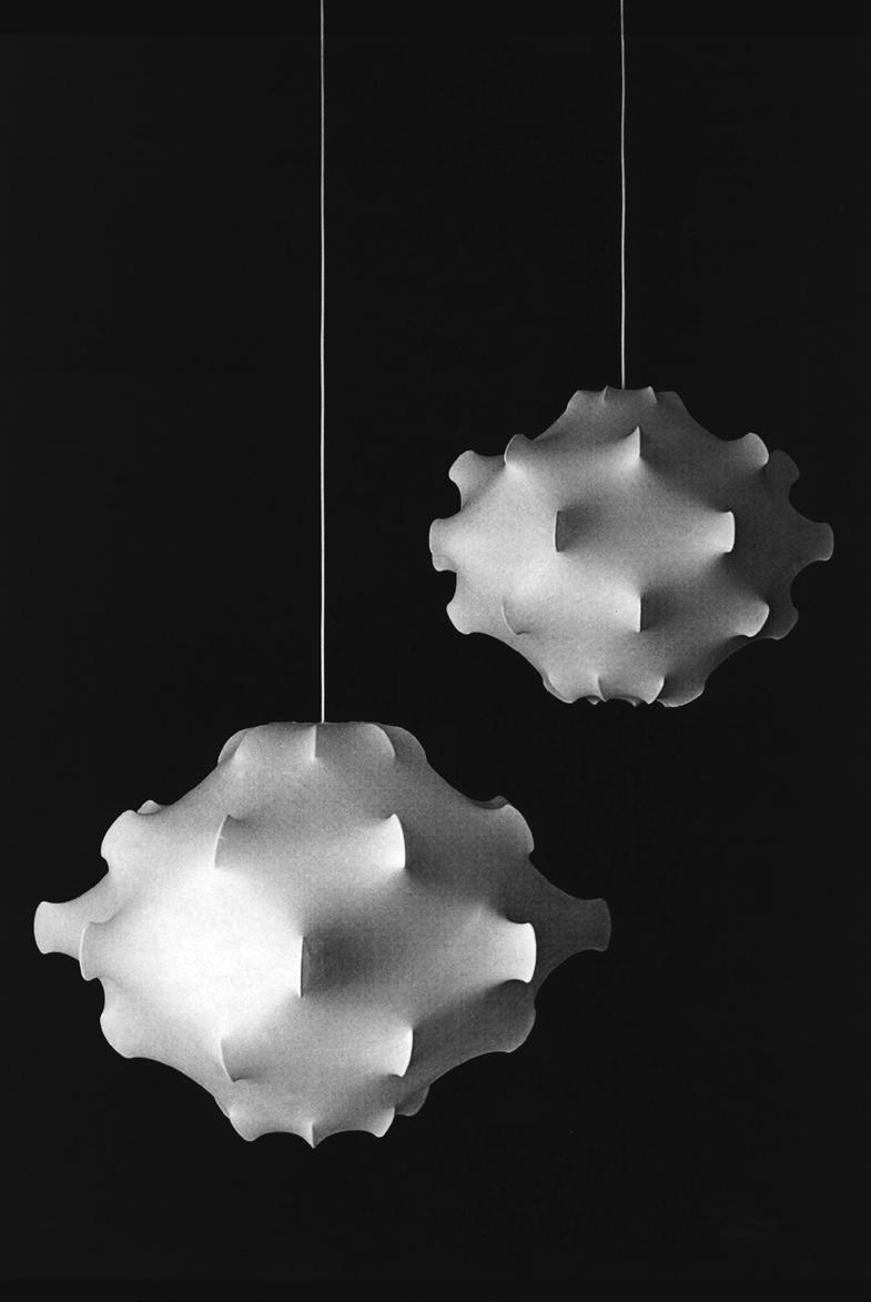 Snoopy, eine alte Legende des Lichtdesigns, wurde im Jahr 1967 von Achille und Pier Giacomo Castiglioni konzipiert und ist eine perfekte Verkörperung des Sinns für Humor der Brüder gepaart mit einer durchdringenden funktionalen Designgeste. Mit einer Silhouette, die auf eine Darstellung des gleichnamigen Comic Strip-Hundes hindeutet, ist das Design der Leuchte unverändert geblieben.