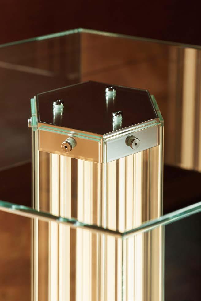 Testifying the novelty of its material from its name, Ceramique is an entirely handcrafted collection made of a lead-free crystalline lacquered finish. The collection’s colours, Moss Green, Navy Blue and Rust Red, enhance the smooth surfaces, reflecting the material’s richness.