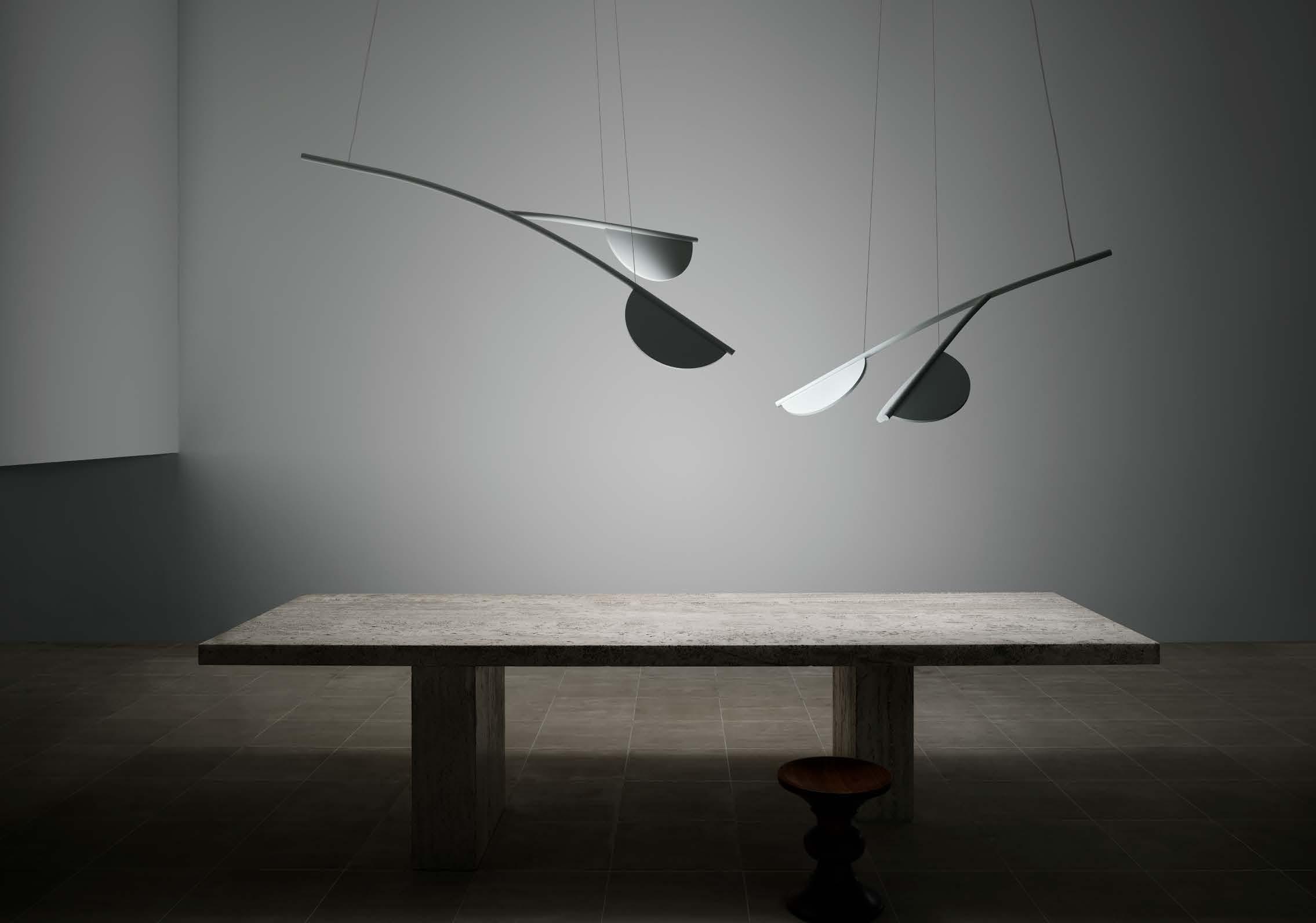 The trajectory of Erwan Bouroullec’s work, both as part of Bouroullec Studio and more recently as a solitary creative, has always combined a distinctive aesthetic approach with a fascination for the industrial mechanics of creativity. His first solo lighting design for Flos, Emi, follows the paradoxical concept of ‘light from shadow’.