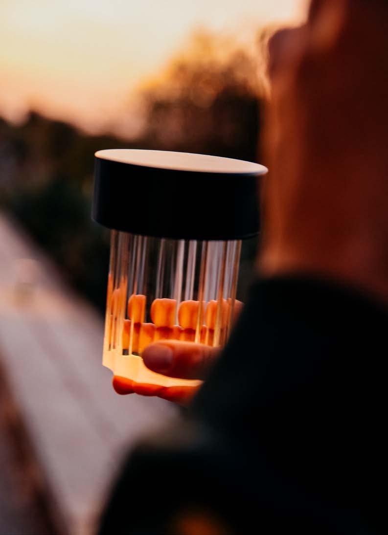 “Bellhop wurde als Tischlampe für das neue Design Museum in London entworfen. Eine Tischlampe, die keine Kabel hat und somit ein Höchstmaß an Flexibilität bietet. Bellhop wirft einen atmosphärischen Lichtkegel und das tragbare Modell kommt einer modernen Kerze gleich.”