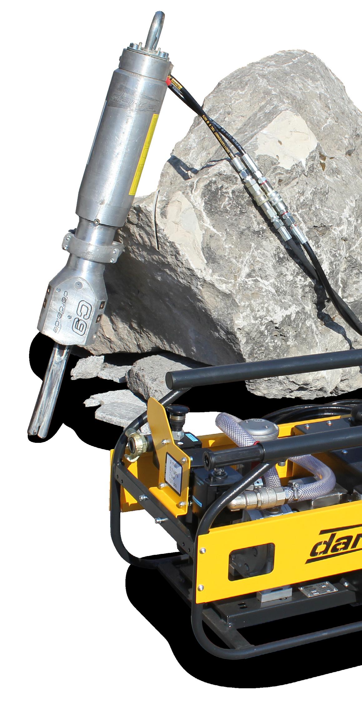 Splitters are handheld demolition devices which controllably split material with the use of hydraulic pressure. They are used when larger conventional demolition devices are ruled out due to their excessive dust, vibration, and flying debris.
