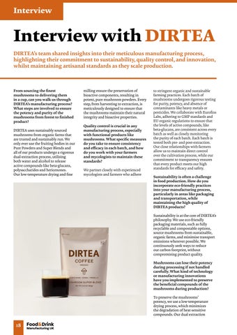 We also have an interview with artisan coffee company Dirtea, who have sustainability at the centre of their philosophy. They speak about all aspects of their manufacturing process, from the eco-friendly packaging to the quality control involved with their ingredients and maintaining their high standards whilst scaling production.