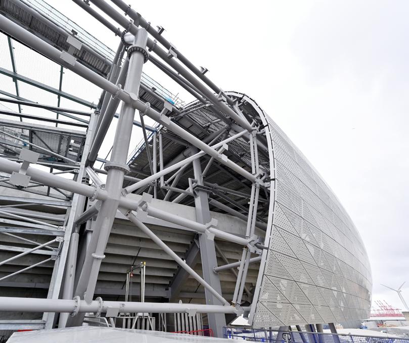 Installing the 872 panels –436 on the east and west stands – is a complex and lengthy process, with the barrel shape and malleable panels presenting several novel challenges to the installation team.