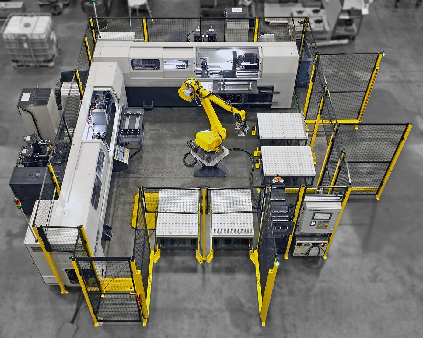 LEFT: One of the 22 automated Heller machine tools loaded with tooling from Guhring