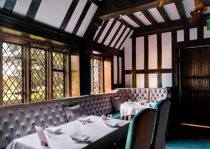 Latymer is situated in one of the oldest parts of the original house at Pennyhill Park. It has an intimate and luxurious feel with wooden panelling, a beamed ceiling, rich plush fabrics, and a smooth balance of friendliness and formality.