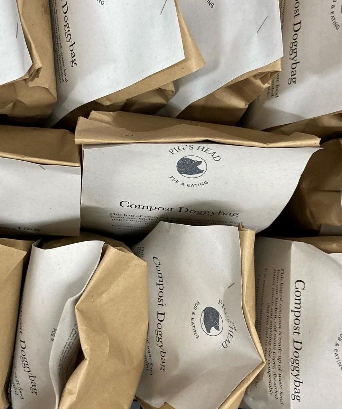 The result is a nutrient-rich compost that is transported, via electric van, to their no-dig farm where they grow many of the vegetables and herbs for the pub. The leftover compost is bagged up into one kilo bags and displayed outside the pub for patrons and passers by to collect and take home for their own gardens and allotments. The Pig’s Head are closing the loop on their food waste, while also giving back to the local community. While the pubs’ owners would like to see a world where they weren’t labelled as a sustainable pub, because that was the norm, they are trailblazing the way for those looking to do the same.