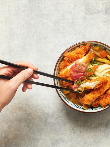 centre of the hustle and bustle of the udon kitchen. Step inside and choose your udon bowl over the counter, or from the graband-go kiosks. Jazz it up with tempura and omusubi sides, then head to the ‘build your own’ condiment station with fresh chillies, ginger, and Japanese sauces to personalise your meal.
