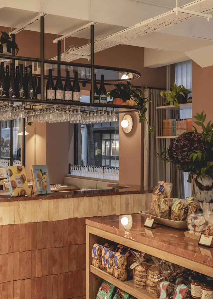 The earthly, honest finishes extend to the choice of handmade terracotta tiles in two tones for the feature counter, while in contrast Rosso Marble for the bar top and white marble for the deli counter add a richer, more luxurious feel.