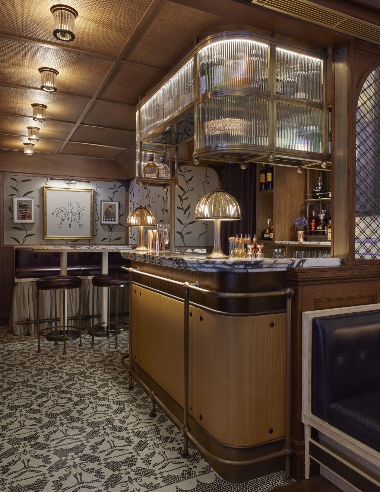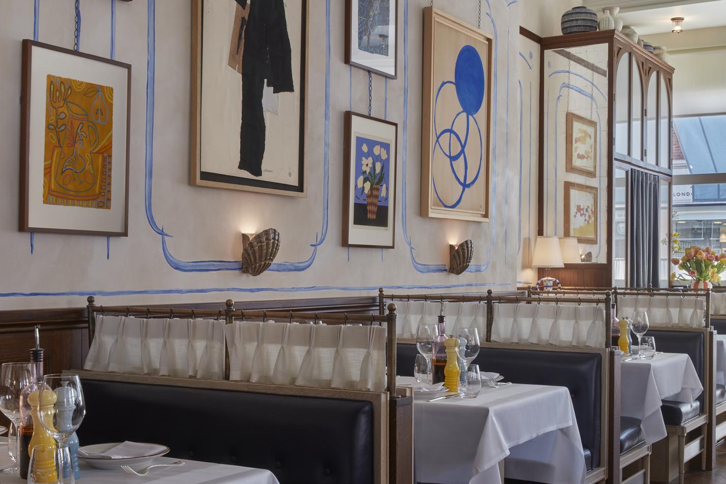 luxuriously comfortable. British artisanal production and craftsmanship has been celebrated throughout with several bespoke features such as the handmade feather tiles, the scalloped pewter bar, and the specially commissioned artwork by celebrated fashion illustrator Thom Botwood.