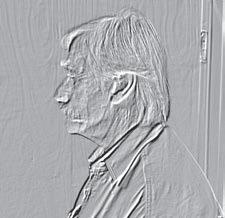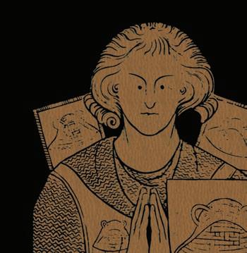 Frottement du bas-relief dâune reproduction de la dalle funĂ©raire de William de Setvans (1278-1322). La dalle, dâune longueur de 74 pouces, reprĂ©sente le personnage couchĂ© dans sa tombe. Ce frottement, au brass rubbing, a Ă©tĂ© rĂ©alisĂ© dans une Ă©glise de Saint-Jean Nouveau-Brunswick pendant quâun organiste pratiquait la Toccata et Fugue en rĂ© mineur de Bach.