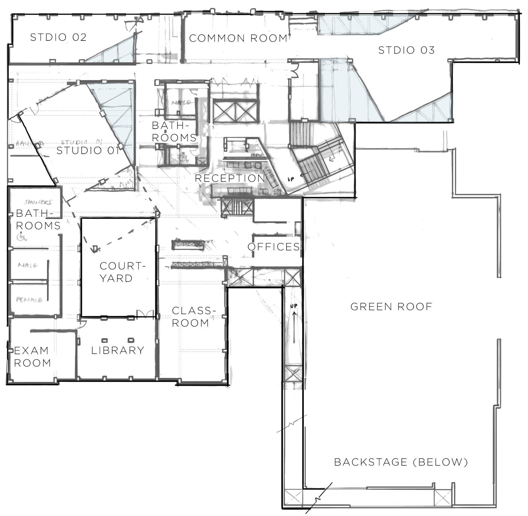 The concepts, adage developpe, eurhythmia and synchronized echainements allowed a coherent response with regards to rhythm as the theoretical source and dance as the function. The design played with the eurhythmics (proportions) of an individual’s rhythms by using moments of adage in the design. This coupled with methods of synchronization, employed with the use of existing and imposed grids, allowed for the aforementioned coherence.