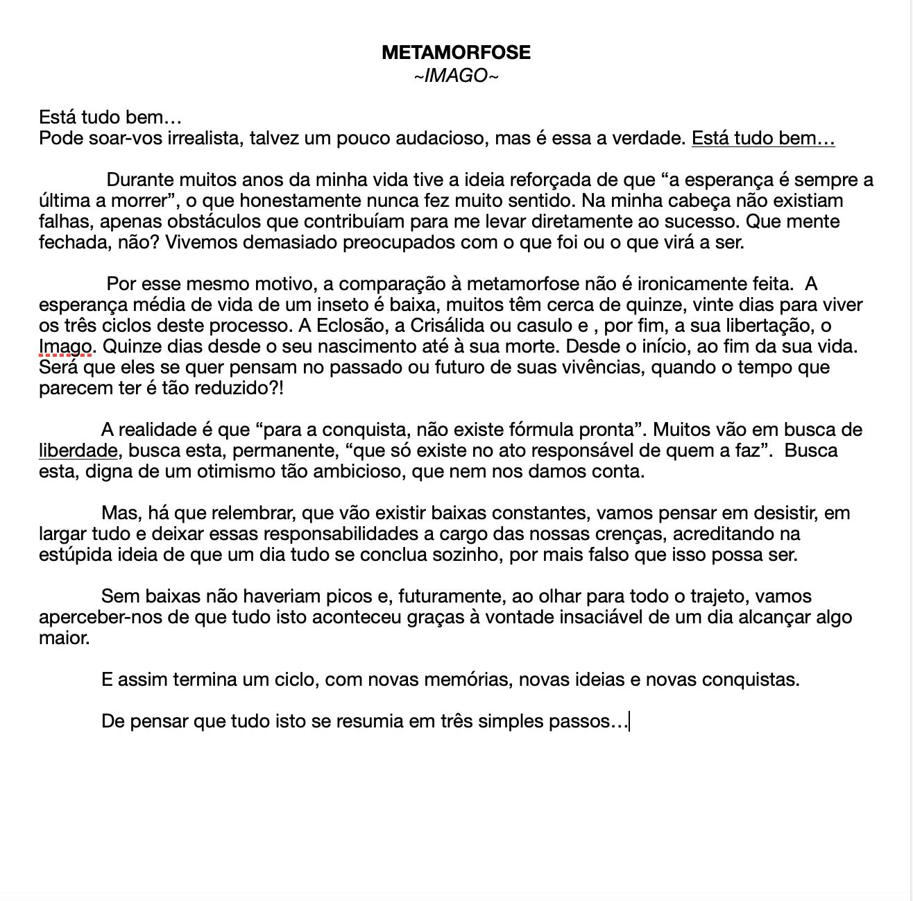 Põe-se em causa a ideia de que vivem um processo rápido e intenso, como a Metamorfose é descrita, resumindo-se sempre ao quão preparados estão para lidar com isso.