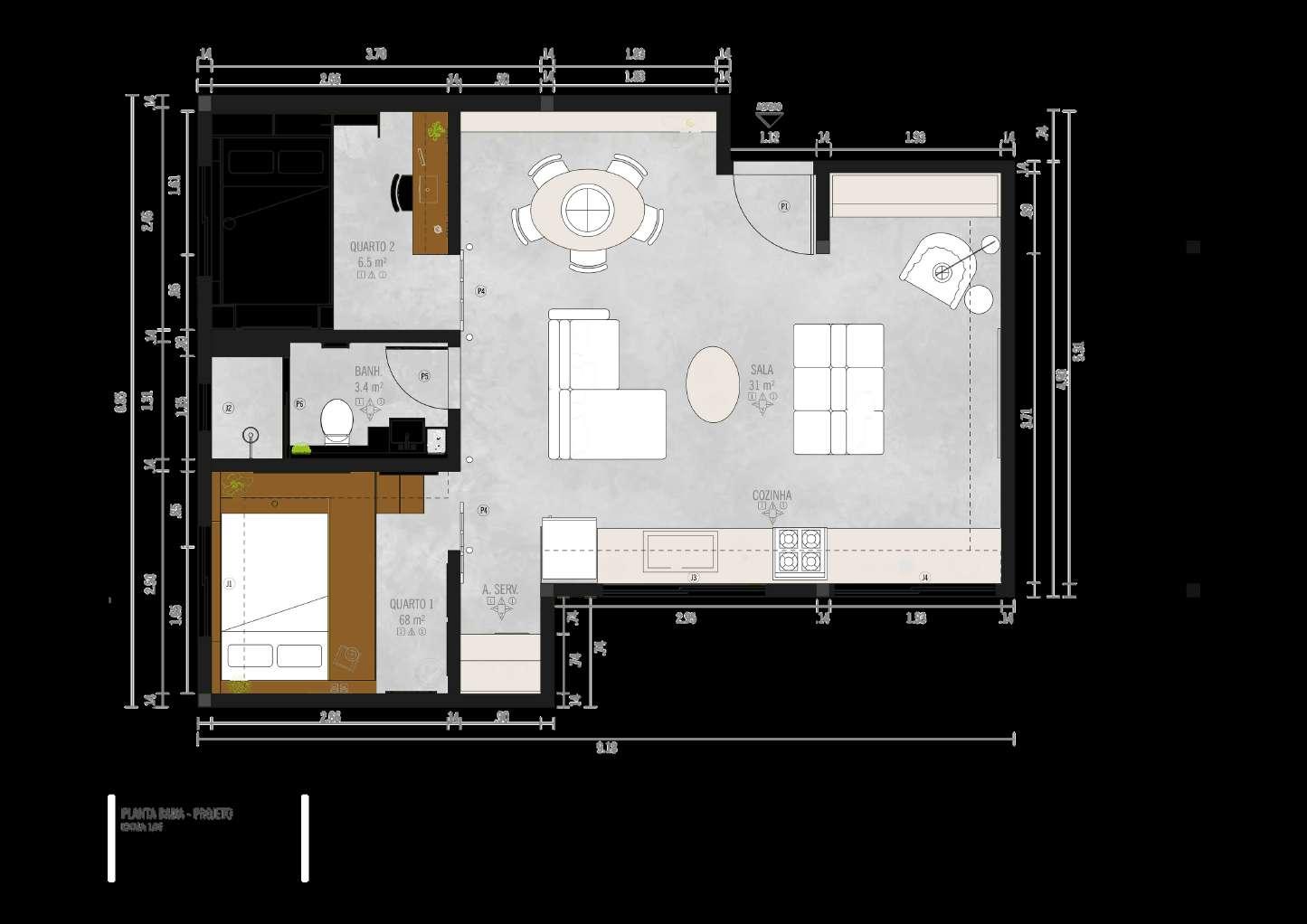 Este projeto, conduzido de forma voluntária, encontrase em fase de execução, prometendo transformar a sala de estar em um espaço verdadeiramente acolhedor e elegante, capaz de refletir a essência e as necessidades do casal.