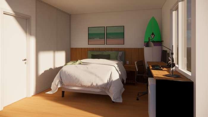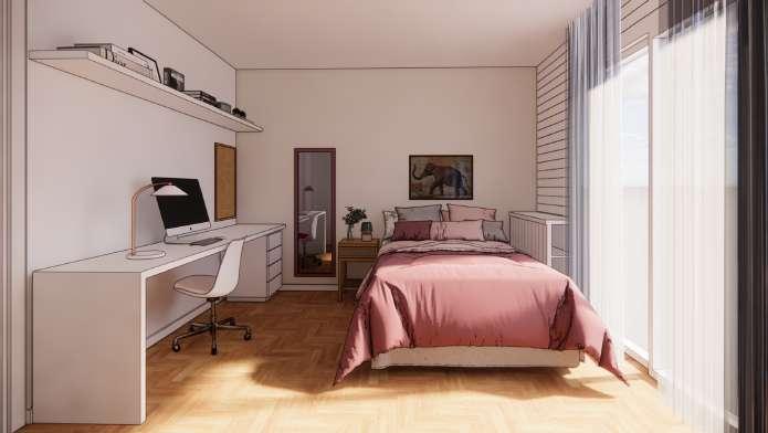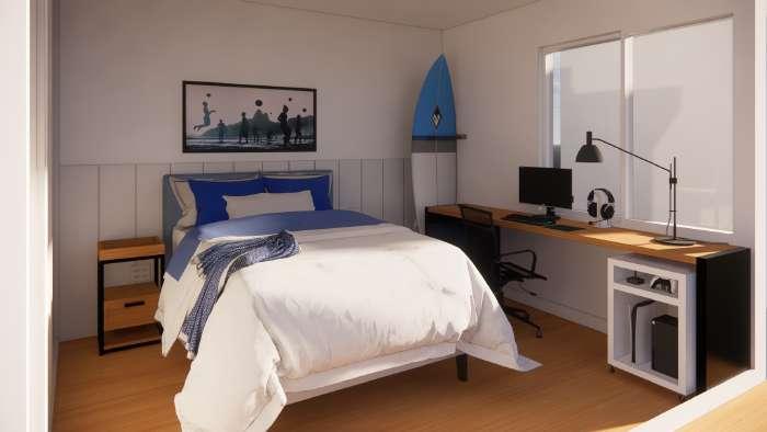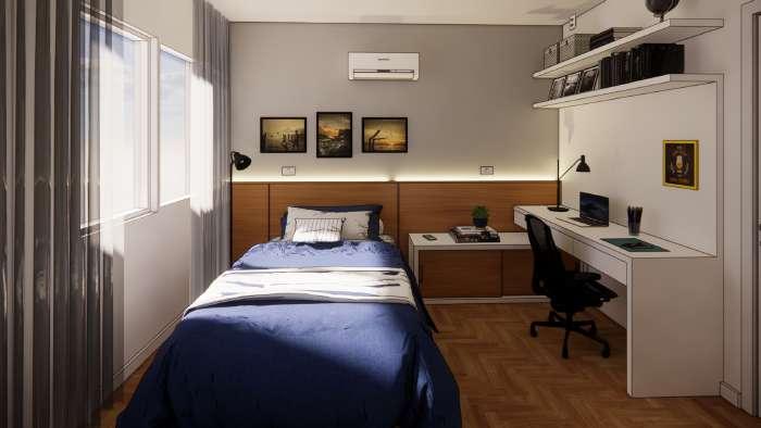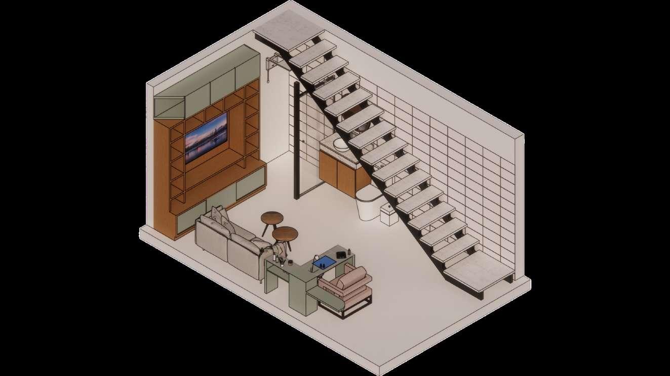 Como parte do curso de Projeto Executivo de Interiores da universidade, desenvolvemos um projeto para a residência de uma estudante localizada na zona oeste do Rio de Janeiro. O desafio consistia em criar um ambiente acolhedor e funcional para duas estudantes de arquitetura, que valorizam a convivência, o estudo, a espiritualidade e seus momentos individuais