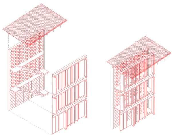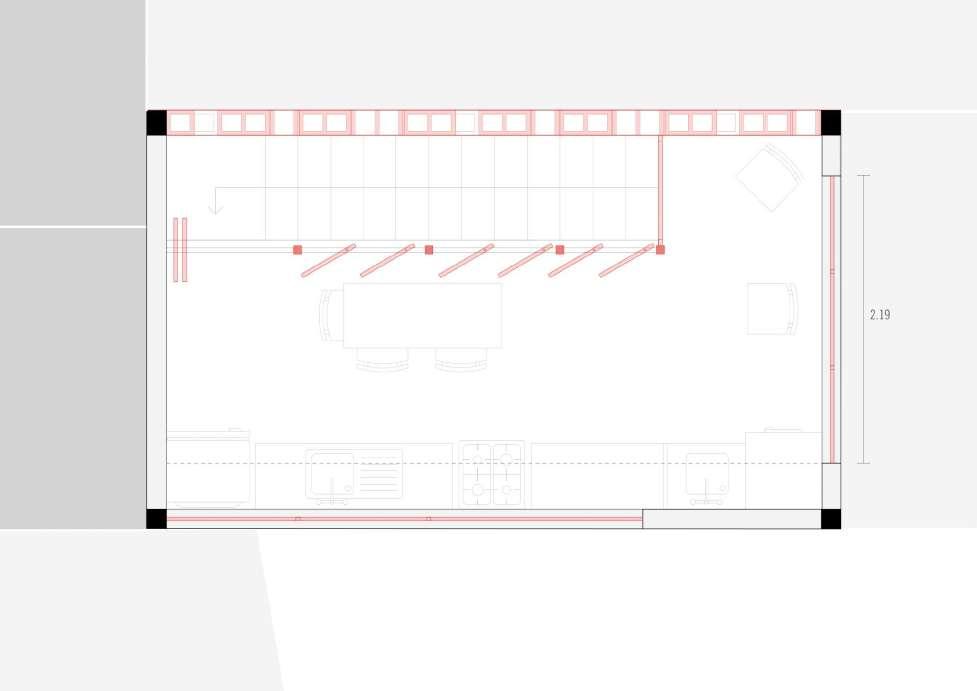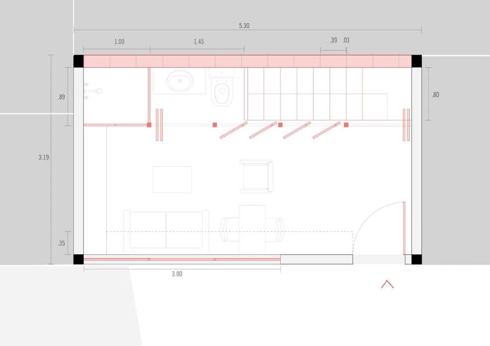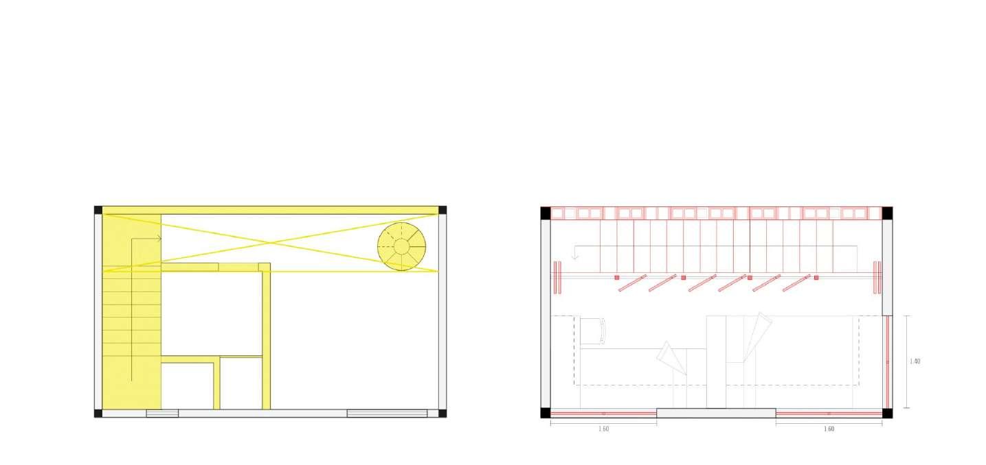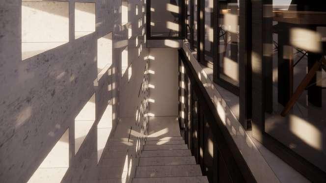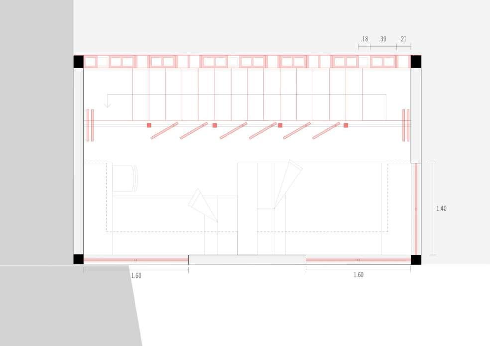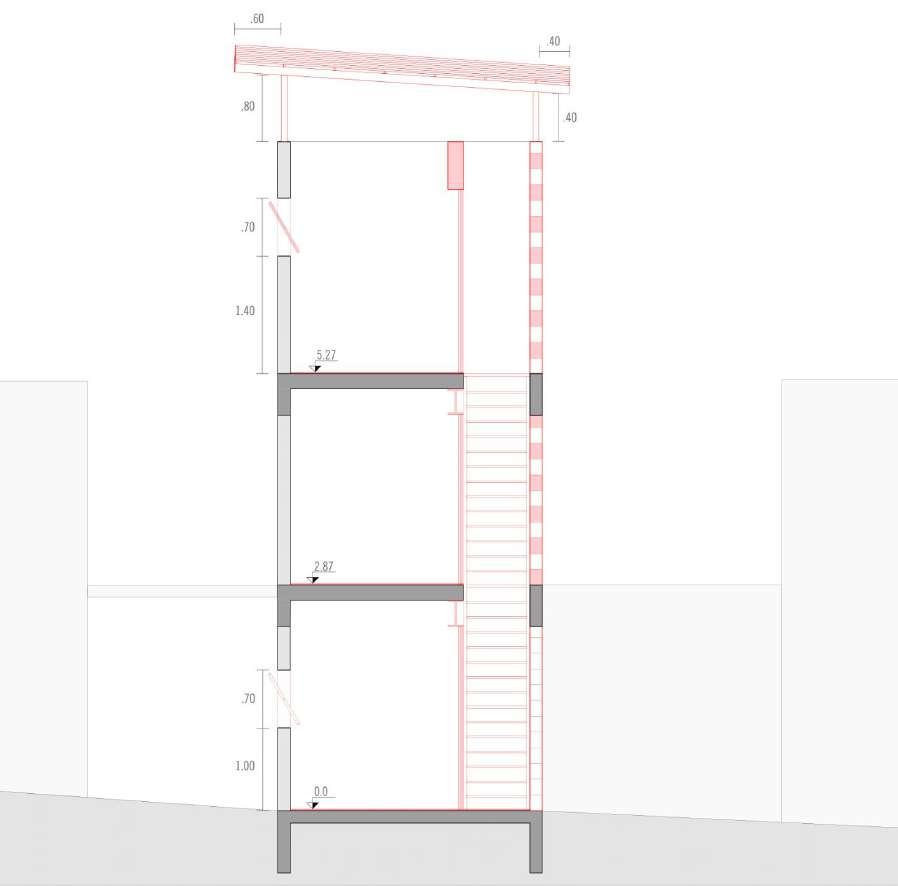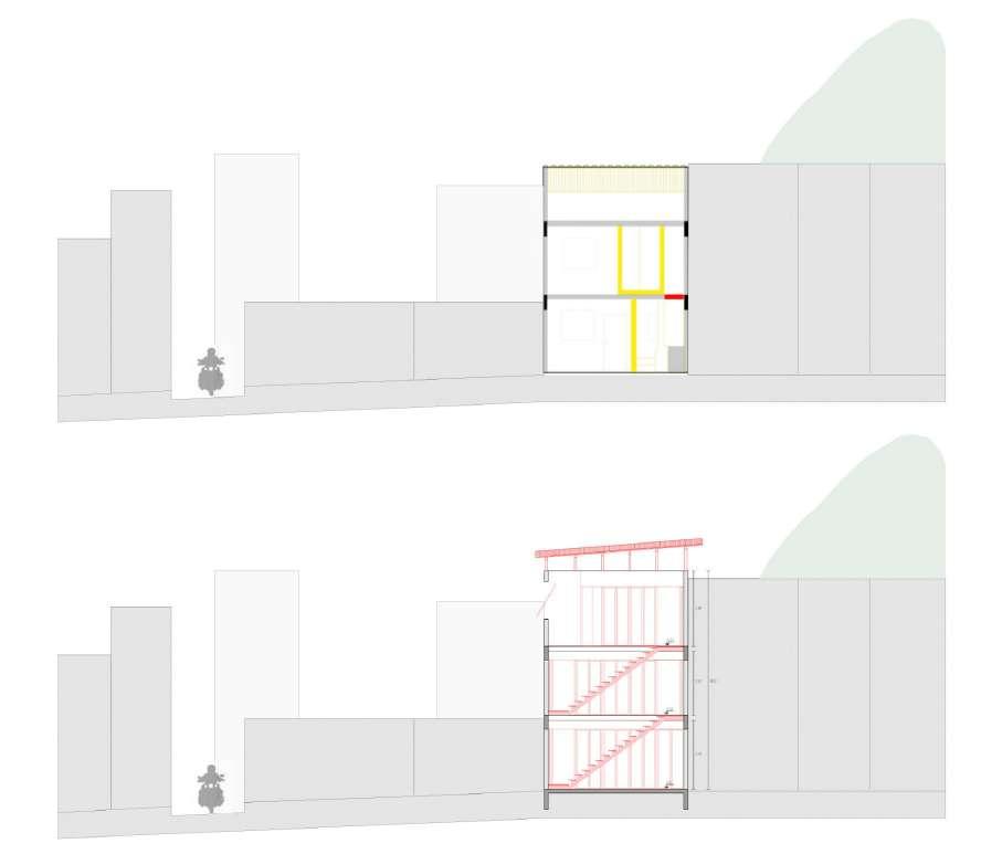 Com a meta de aprimorar a habitabilidade, implementamos uma escada paralela ao muro, estrategicamente posicionada com aberturas na fachada noroeste para melhorar o conforto térmico e otimizar a distribuição dos espaços A inclusão de portas rotativas não só proporciona um controle preciso sobre a entrada de luz, mas também acrescenta um toque estético funcional Além disso, a inclinação calculada do telhado não apenas amplia a vista proporcionada pela topografia elevada, mas também facilita a entrada de ventilação e luz natural, elementos anteriormente escassos no desenho original Estas cuidadosas intervenções têm como objetivo transformar este espaço em um lar que não só atenda às necessidades práticas da família, mas também celebre a harmonia entre forma e função, promovendo uma qualidade de vida significativamente aprimorada e uma experiência residencial enriquecida.