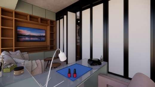 A abordagem adotada visava expandir a área compartilhada, utilizando marcenarias funcionais para preservar a privacidade de cada moradora. A atmosfera do espaço foi cuidadosamente concebida, incorporando cores e texturas que proporcionam aconchego e vivacidade ao ambiente O projeto busca, assim, atender às necessidades específicas das moradoras, oferecendo um lar que harmoniza funcionalidade, beleza e personalidade.