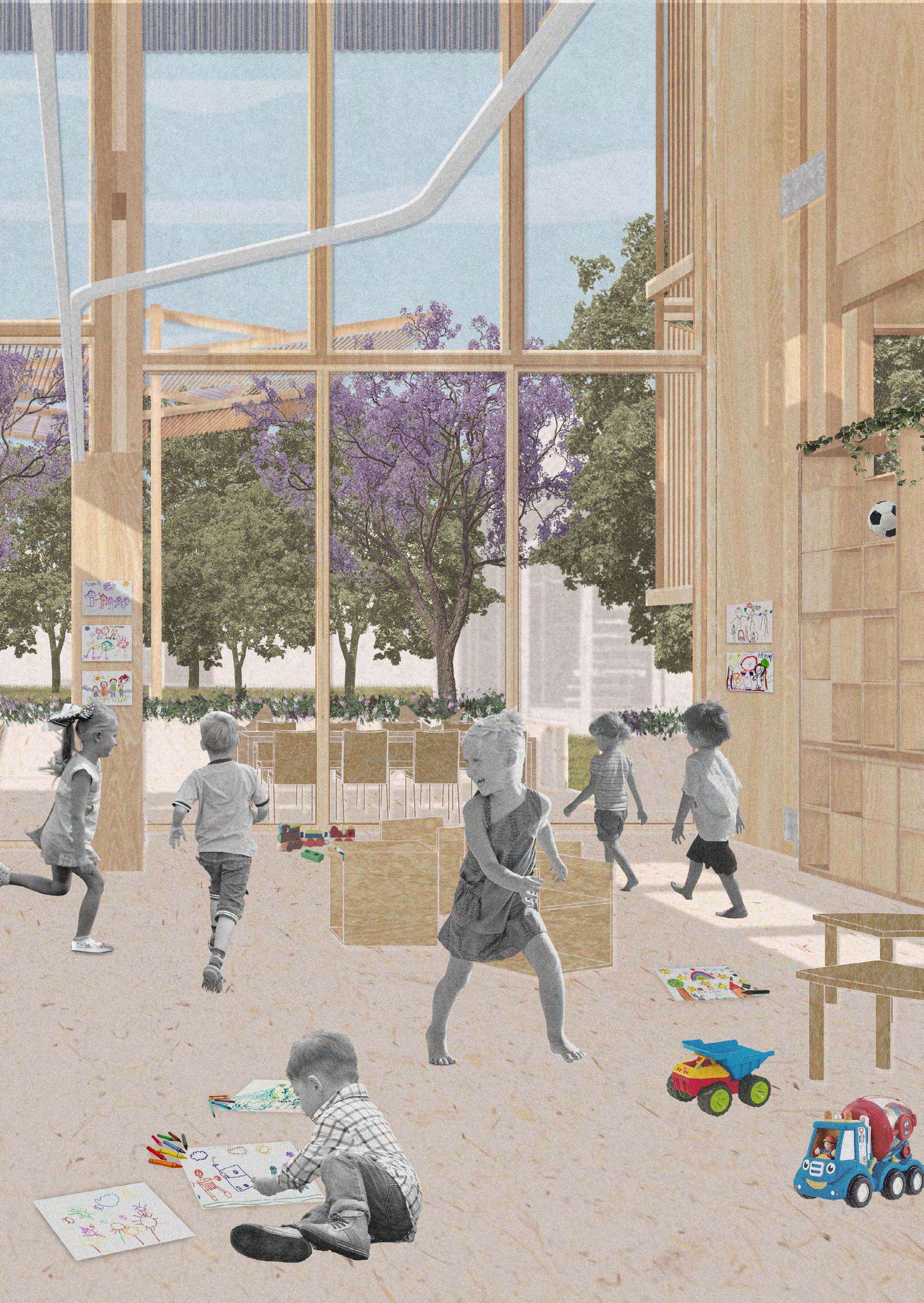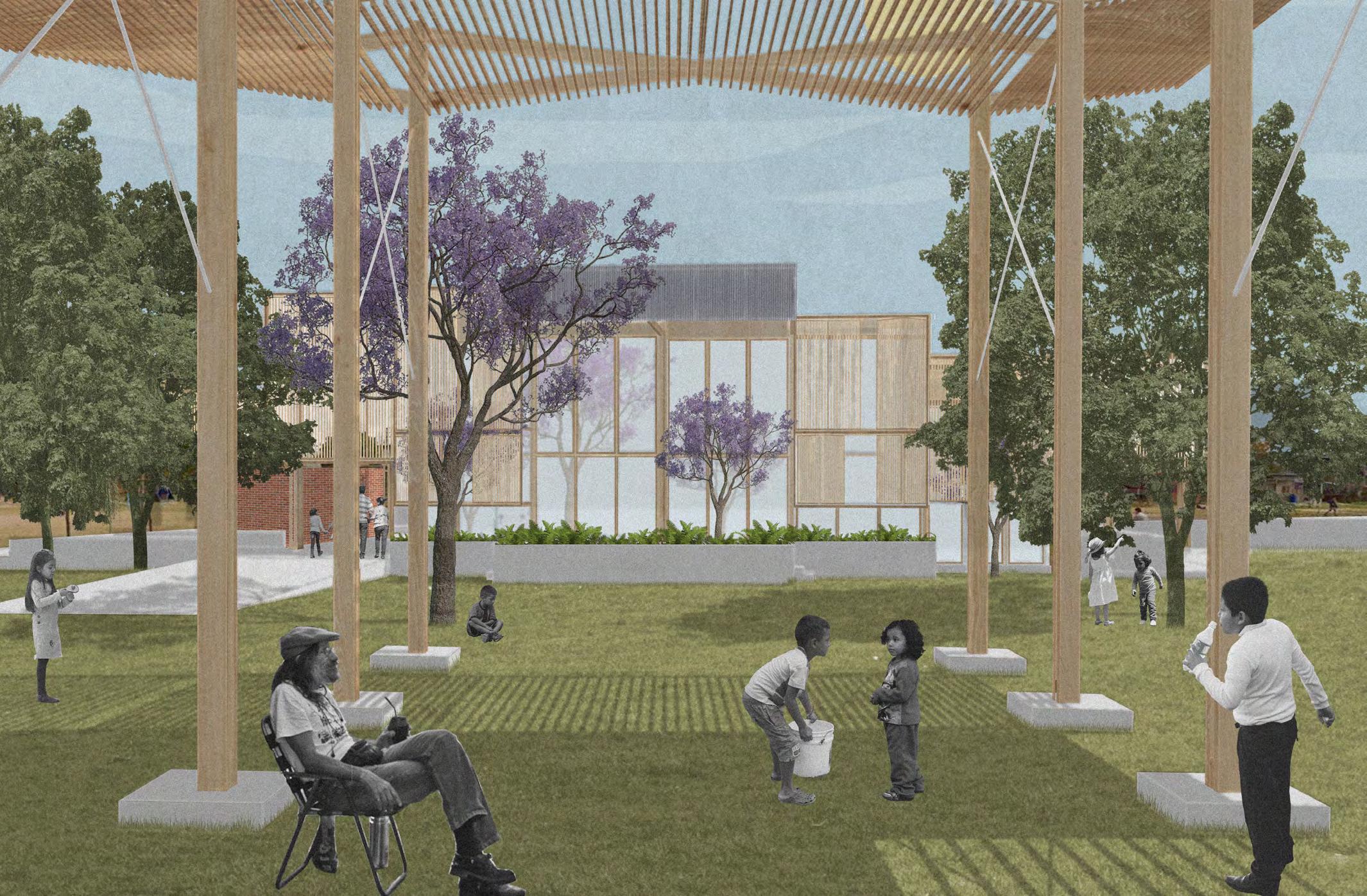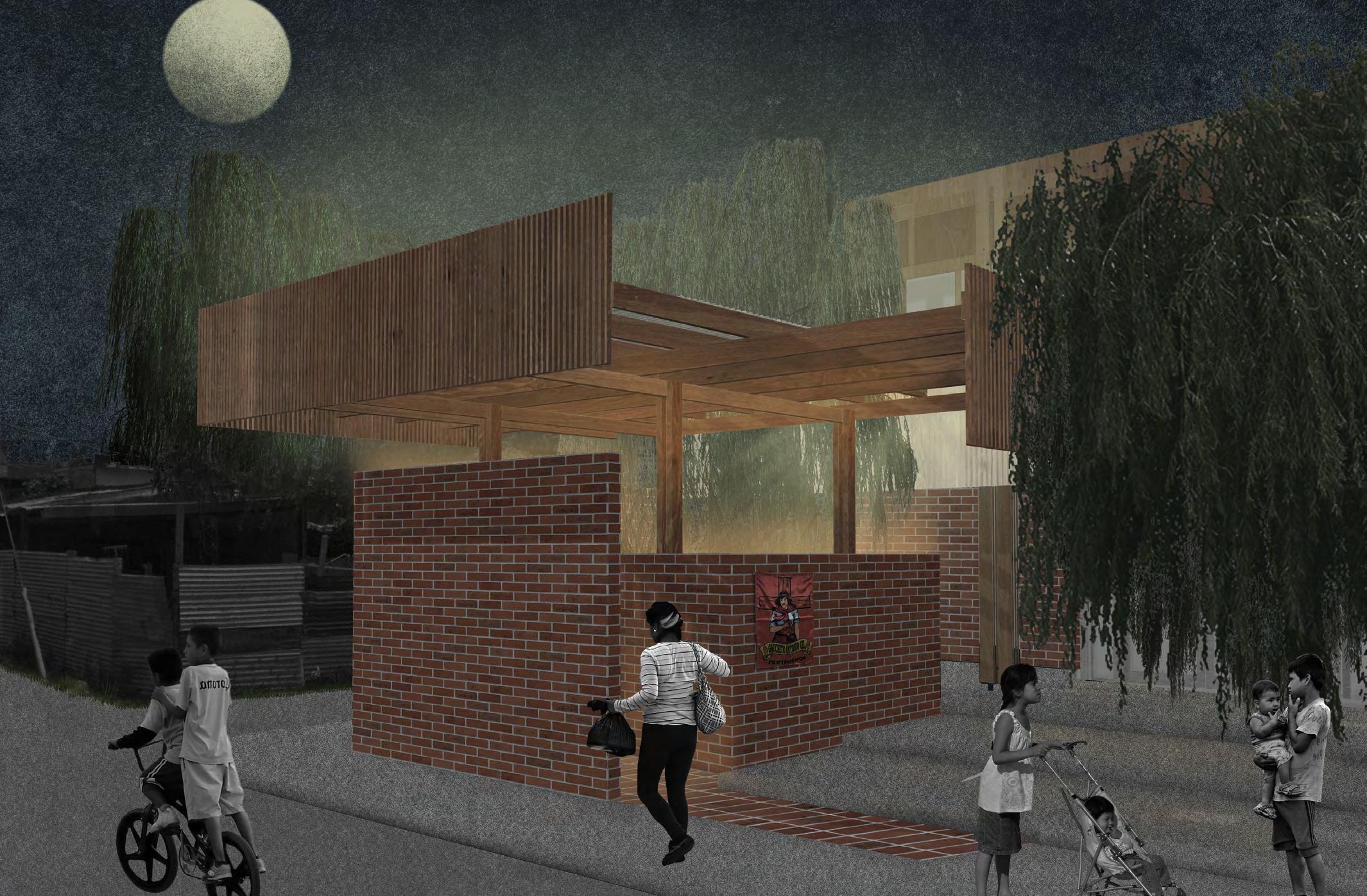 Charlando con vecinxs y recorriendo el barrio, se pudo detectar una falta de infraestructuras públicas destinadas a lxs niñxs que habitan la zona y de espacios formales de encuentro barrial. Es así que surgió la posibilidad de diseñar este Centro Cultural y Deportivo en uno de los lotes que quedaron vacíos debido a la elevación del Viaducto San Martín.