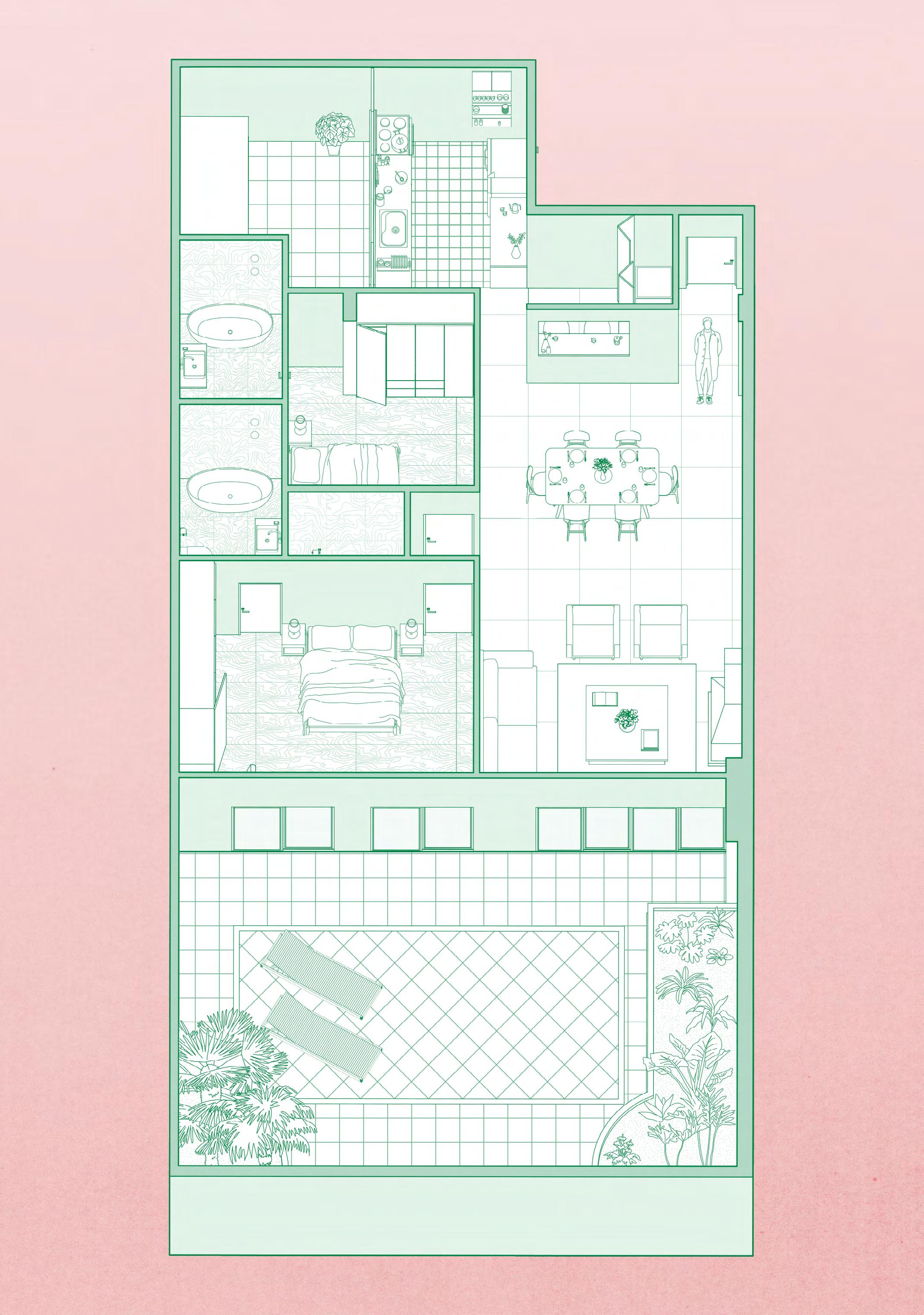 La remodelación de este PH fue encomendada al estudio en 2022. Si bien mi participación en cuanto al diseño del proyecto ha sido menor, debido a que me incorporé en Ordoñez Wenzke en el verano de 2023, me resulta importante mostrar la documentación que realicé en estos meses.