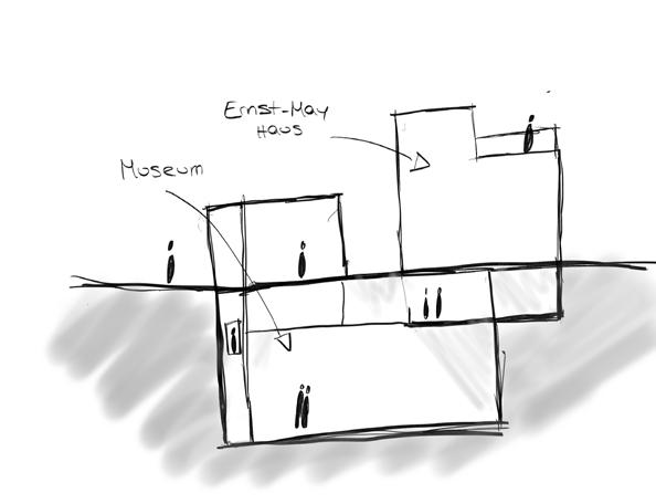 5 Ansicht Süd M 1 00 Lageplan M 1 500 Wegführungspiktogramm Dorf Elemente Frankfurt Skyline Umriss Piktogramm Lichteinfall EG - 2 OG Lichteinfall ab 3 OG Kommunikationspiktogramm