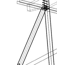 Por se tratar de um galpão pres supõe-se as faces laterais livres e, portanto, a necessidade de contraventamento tanto nelas quanto na cobertura - estrutura de MLC e telha termoacústica. No momento de concepção optamos pelo uso de pilares em V, por questões estéticas que acabam por suprir essa necessidade, por outro lado, o contraventamento do telhado borboleta foi realizado com uso de cabos de aço.