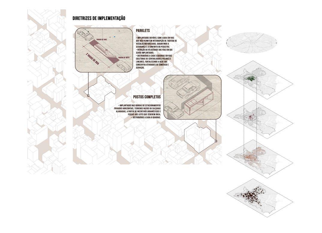 rendimentos apontam a precariza ção do trabalho dos entregadores que, ao longo da pandemia, presenciou um crescimento considerável. Olhando para esse cenário crítico nos propusemos a elaboração de um projeto-piloto que mescla centros de apoio e mobiliários urbano voltados a esses trabalhadores com caráter sistêmico e que formam uma rede codependência, visto suas ações pontuais, entre si.