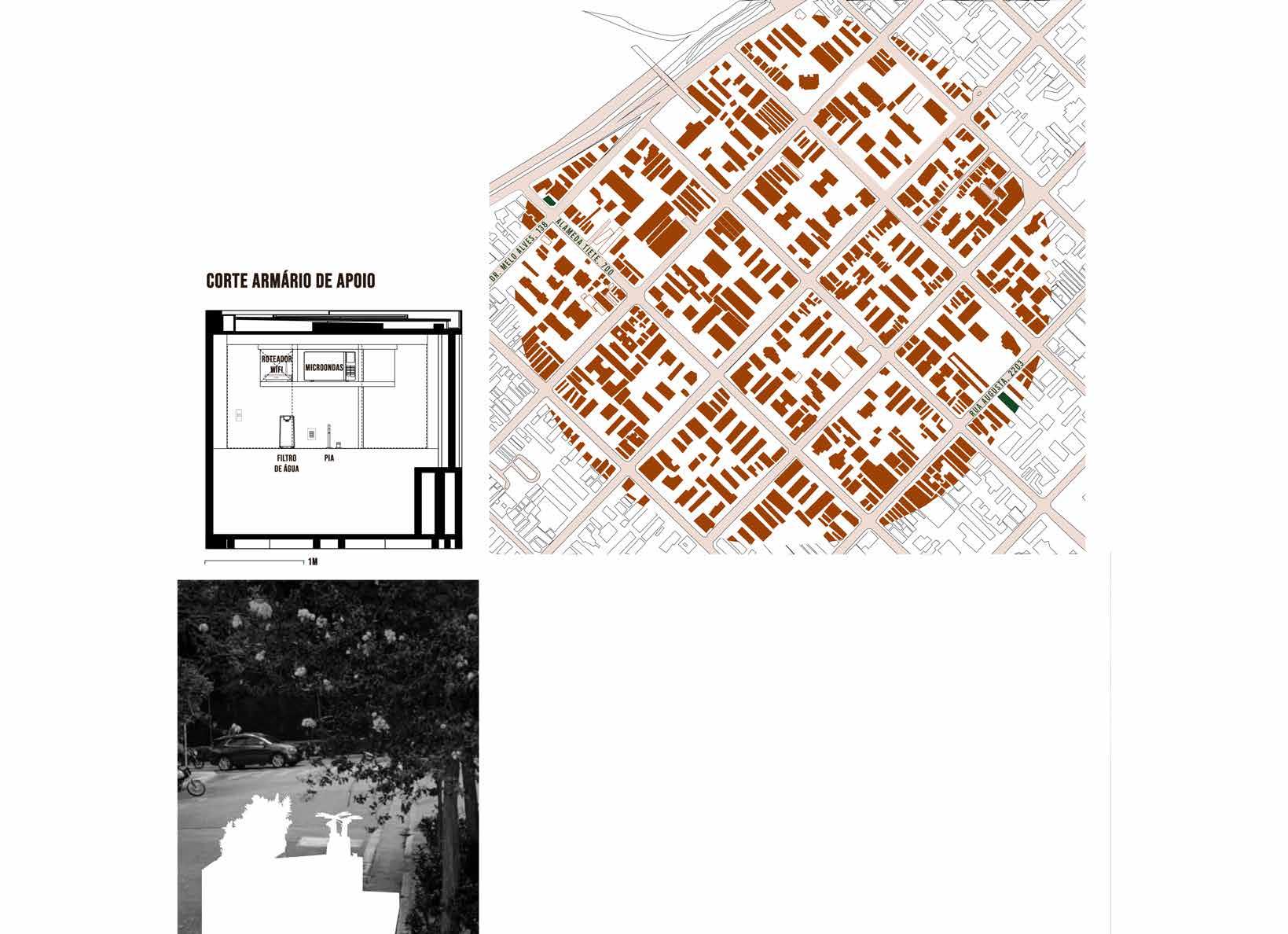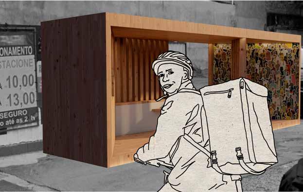 ção do trabalho dos entregadores que, ao longo da pandemia, presenciou um crescimento considerável. Olhando para esse cenário crítico, nos propusemos a elaboração de um projeto-piloto que mescla centros de apoio e mobiliários urbano. Duas categorias de intervenção urbana que se voltam a esses trabalhadores com caráter sistêmico e que formam uma rede codependência, visto suas ações pontuais, entre si e que ainda podem atender a população geral.