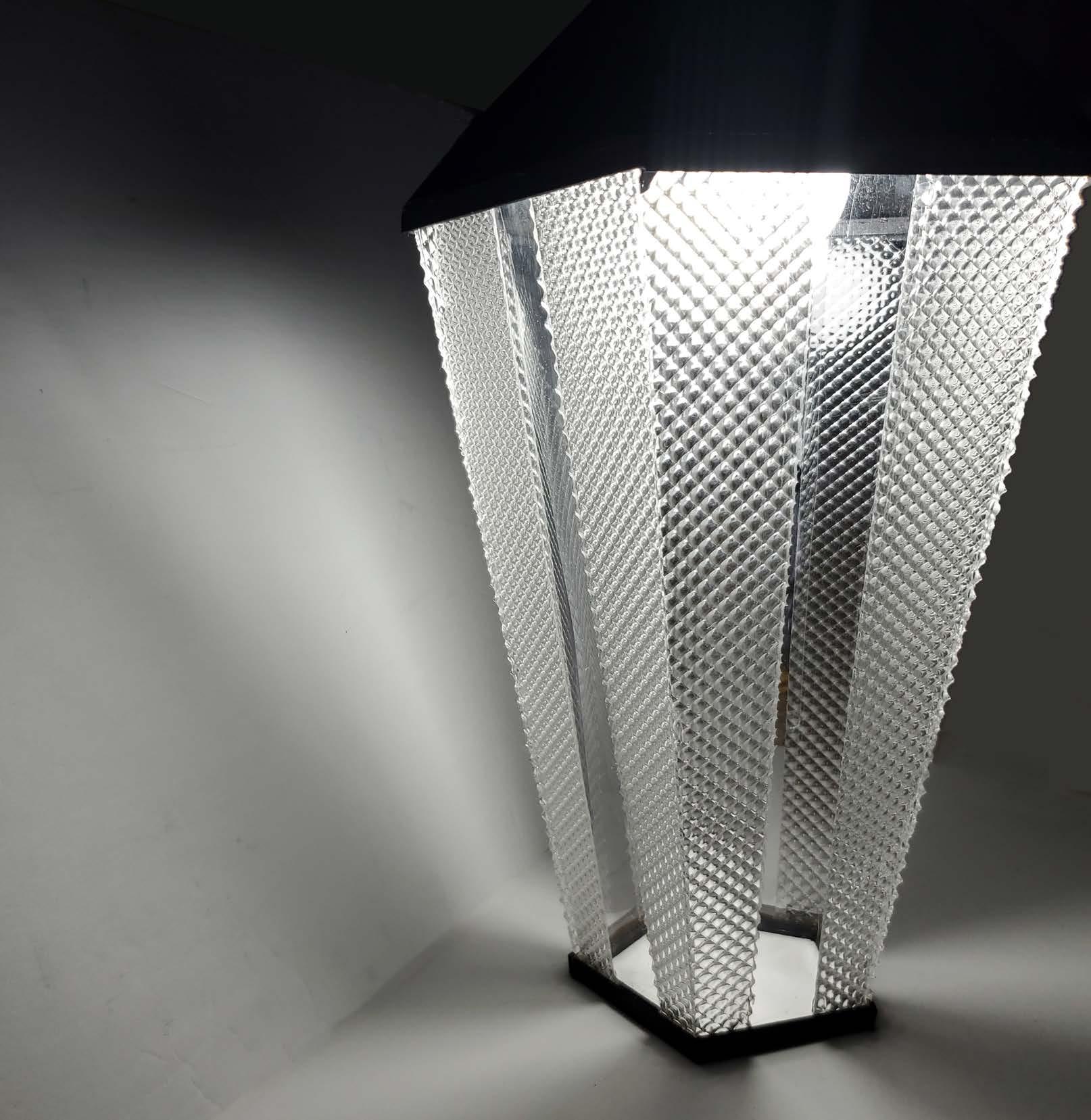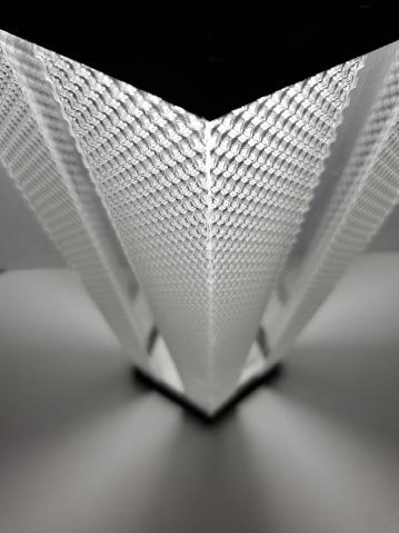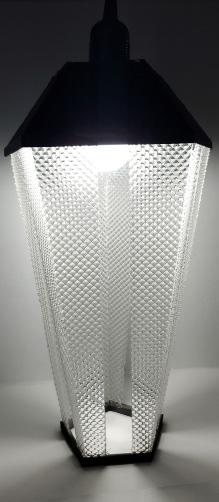 This lighting pendent was designed to effectively illuminate an intimate environment. Whether located in a bedroom, living area, or outdoors, this fixture utilizes varying properties of diffused light to make the observer feel relaxed and cozy, while providing the space with a hint of sparkle. As a result of layered plastic materials and their properties of diffused and translucent transmission of light, the fixture is a statement piece that visually engages the eye through its vocal glow and ambient lighting. Radiating a variety of illuminance from the perforated plastic materials and admitting a warm glow throughout the space. Lastly, this pendant further incorporates sustainable innovation by reusing perforated and non-perforated plastics.