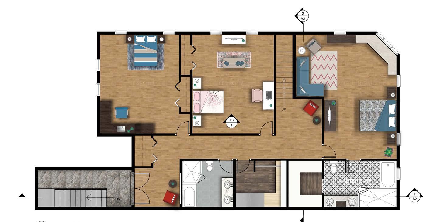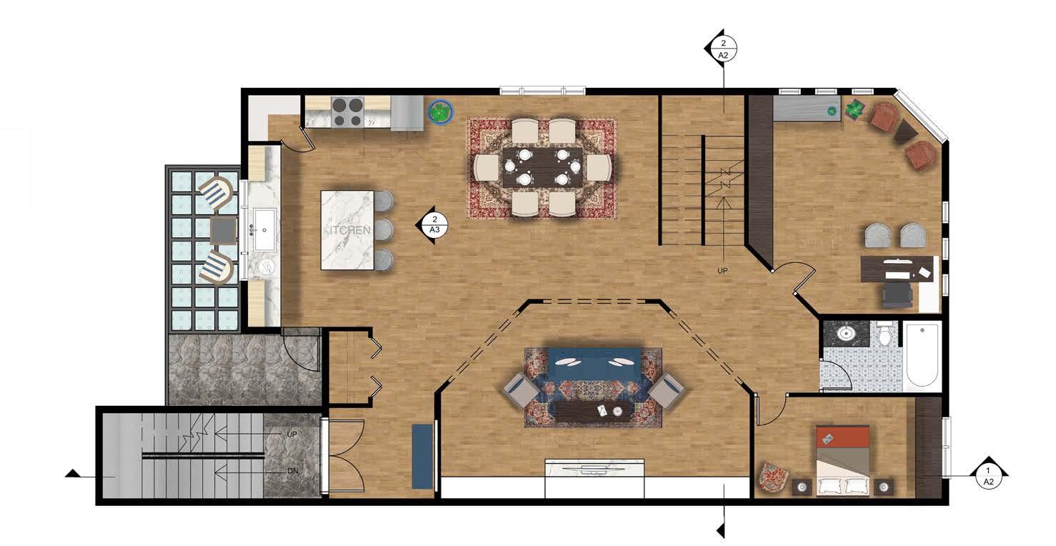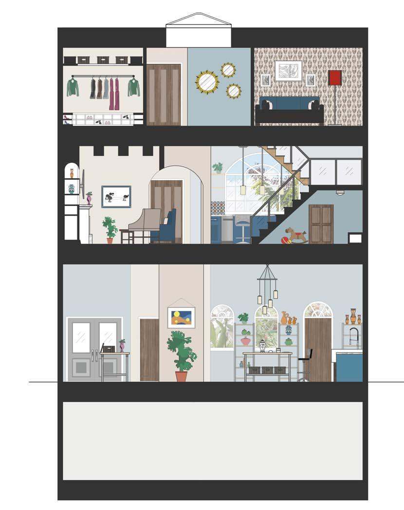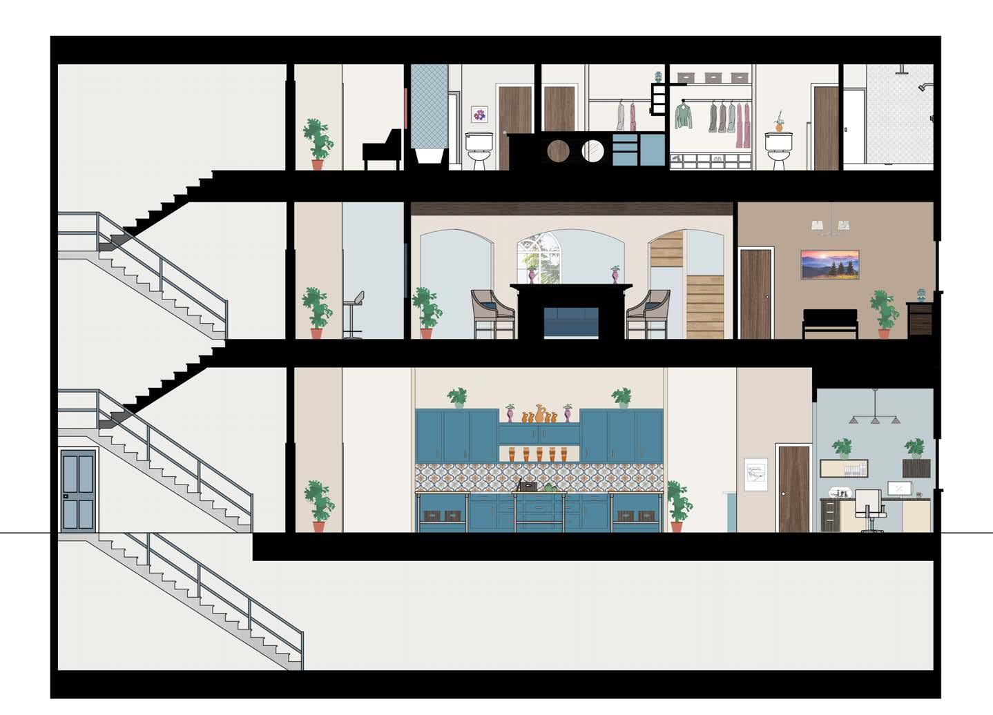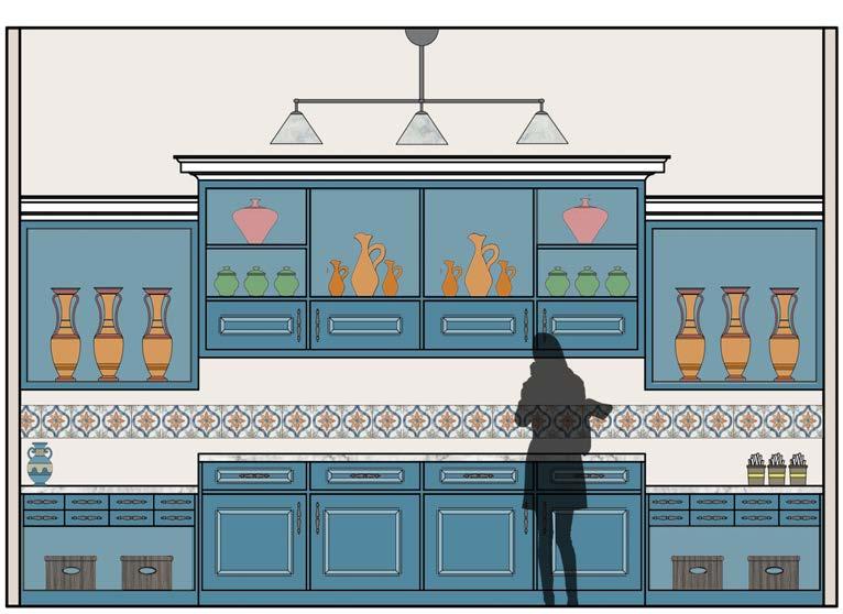 This project focused on the collaboration of design styles between the owners of the house and shop. The space follows a bright and open concept that will retain the sun’s warmth and natural lighting through energy efficient design and materials. Its use of neutral earth tones provides the space with a sense of serenity, while the colourful accents and geometric patterns allow for a playful atmosphere to be created. The furniture and lighting fixtures will be contemporary accompanied with Spanish inspired accents. Overall, the style is a collaboration of contemporary and traditional design.