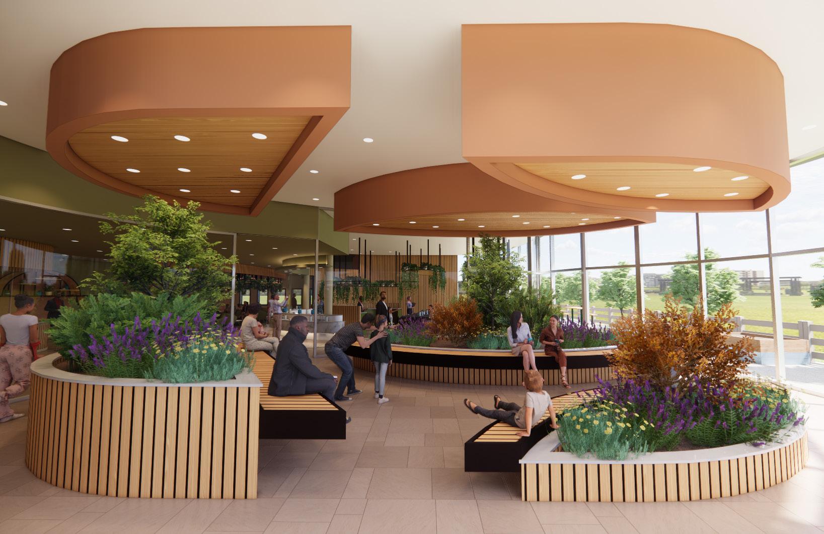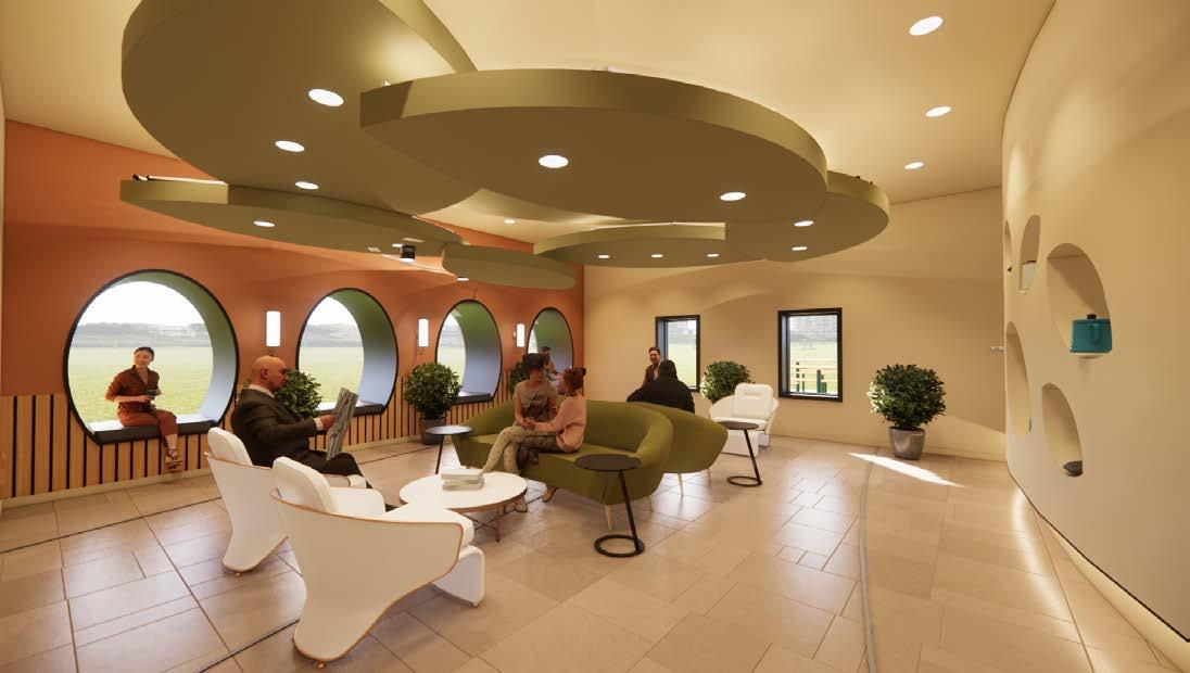 The reading area was designed as a cozy and quite place to escape the hustle and bustle of daily life. An extension off the main lounge, this space provides comfort in its window nooks and a subtle radiating glow in the ellipse shaped ceiling features.