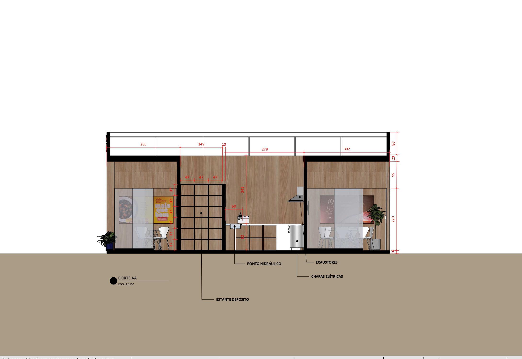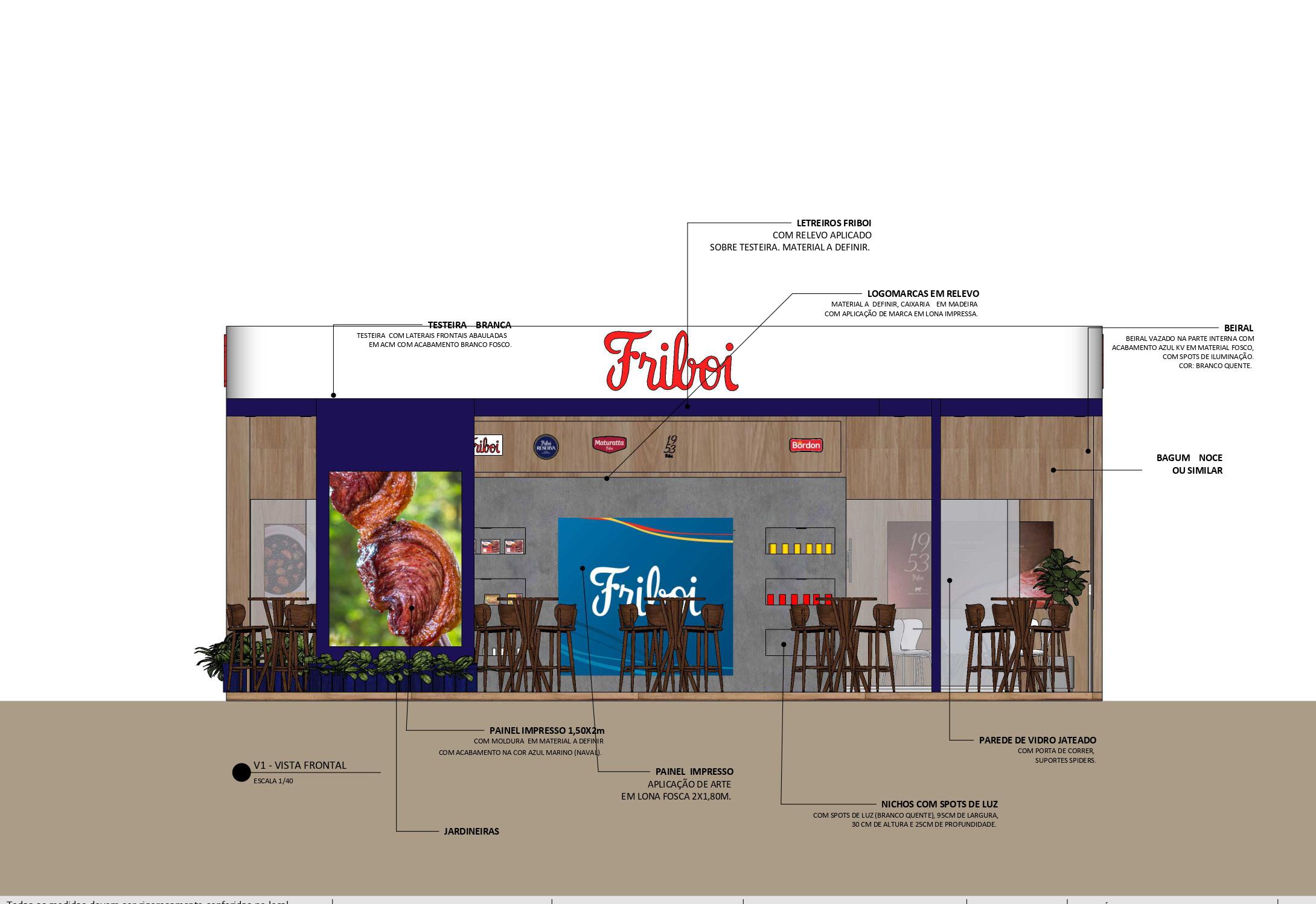 Desenho técnico realizado para arquiteta e cenógrafa Gabriela de Paula, apresentação técnica para cliente Friboi.
