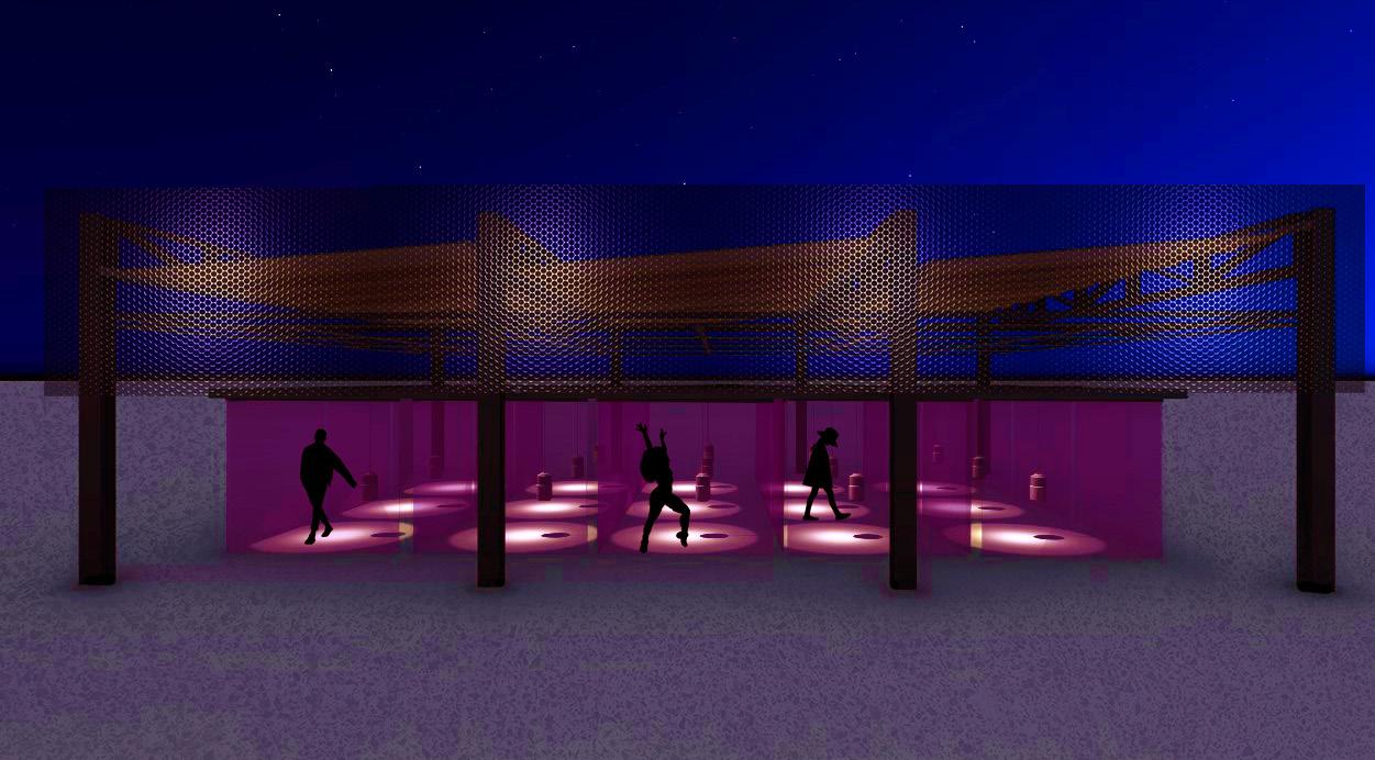 Malha metálica - visa proteger a parte técnica do edifício, assim como garantir uma caixa preta para a iluminaçao