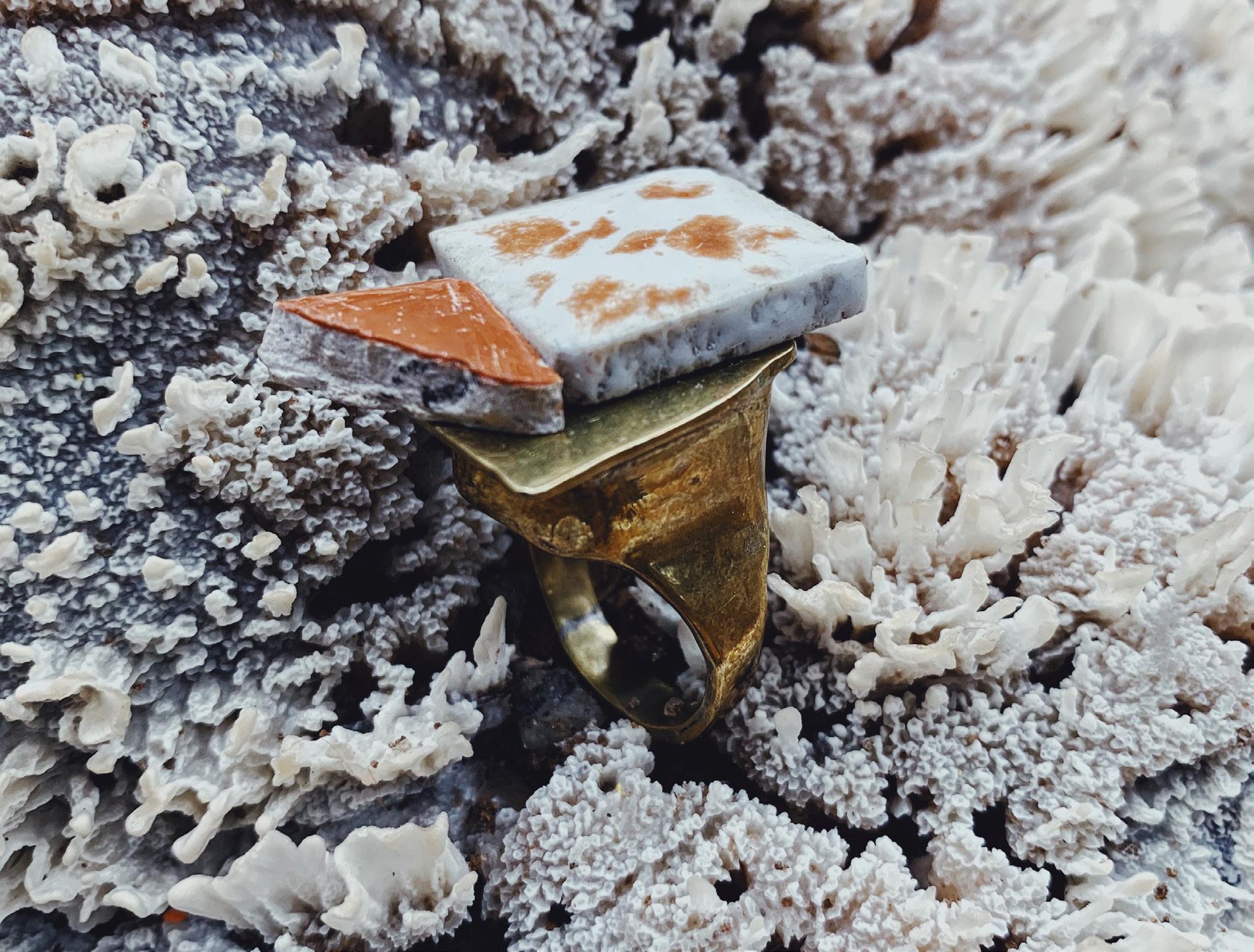 Materiais: latão, cobre, prata, pedras, cerâmica, sementes y fibras orgânicas, parafina mineral