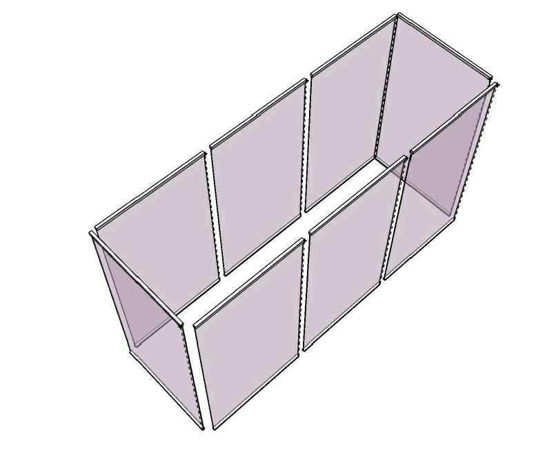 Os paíneis de tecido possuem total liberdade de circulação, uma vez que os trilhos foram desenhados de forma a permitir uma rotaçao em 90 graus nos dois eixos que compõe o gride. Além disso, o sistema permite que os painéis sejam facilmente trocados de acordo com necessidade.