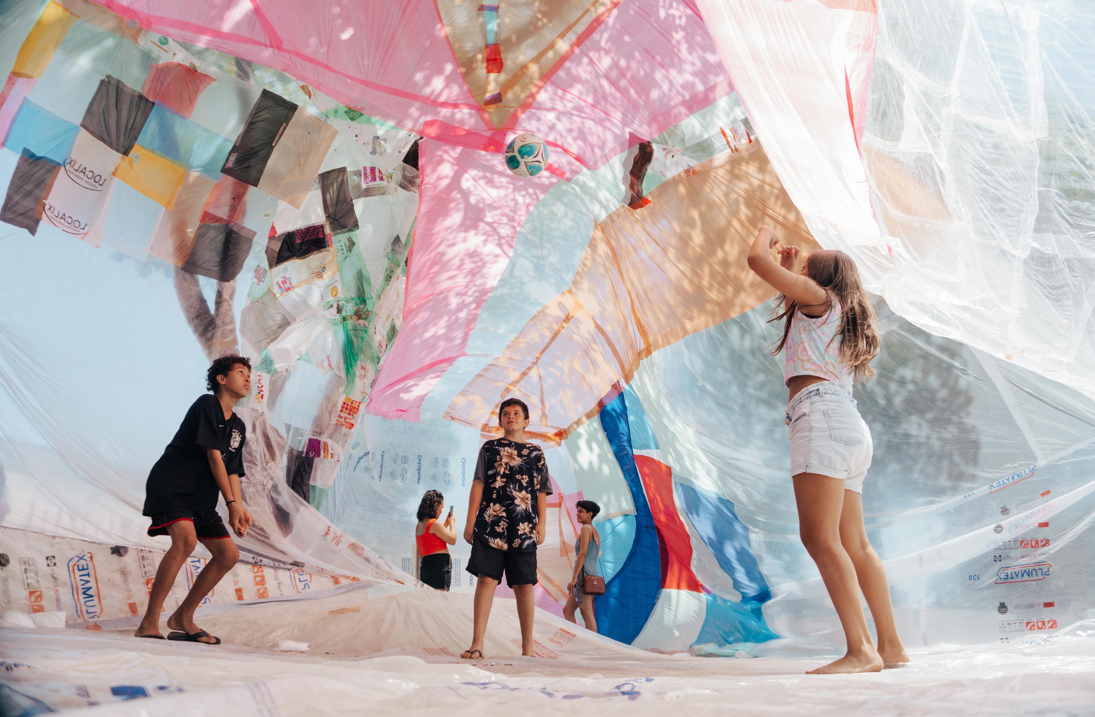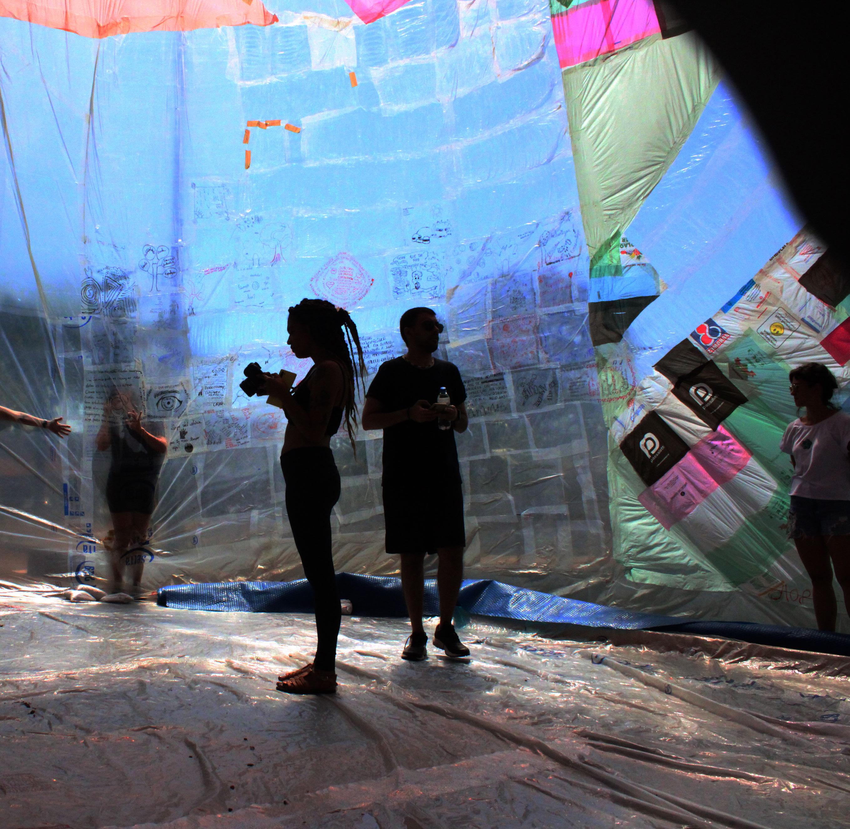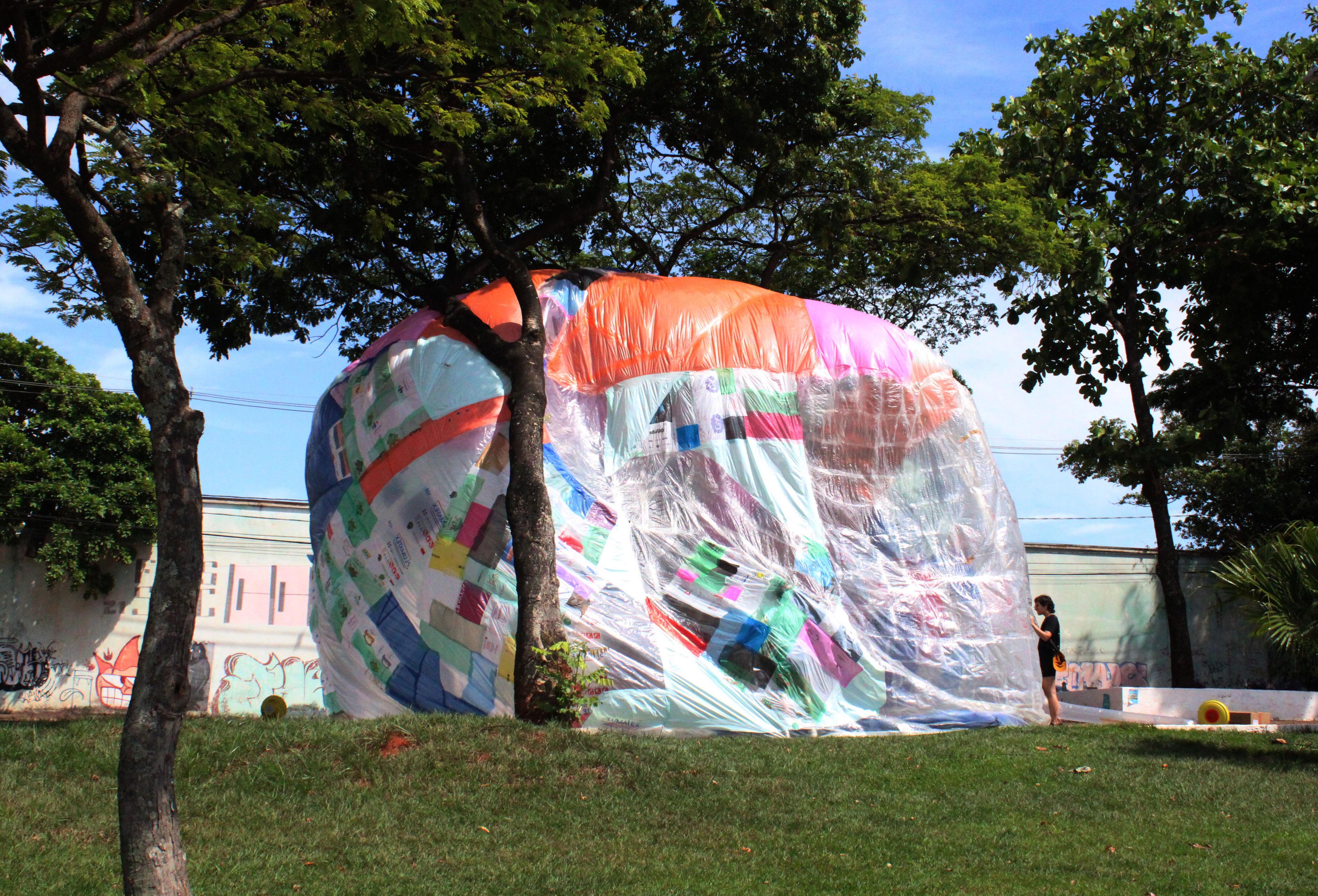 A convite do multiartista e ativista Mundano, o coletivo Flutua foi convidado para produzir uma intervenção inflável feita de reuso de sacolas plásticas.