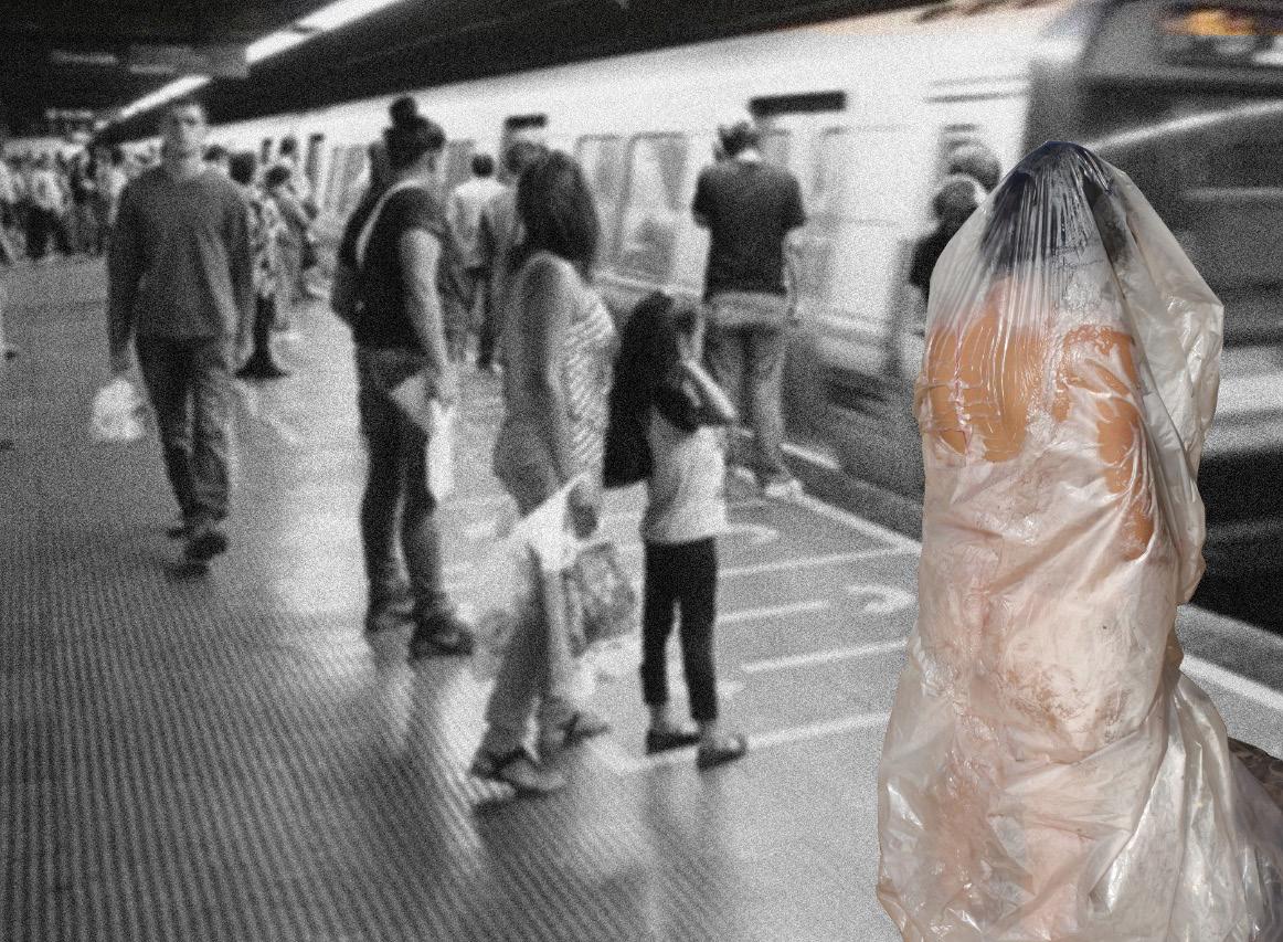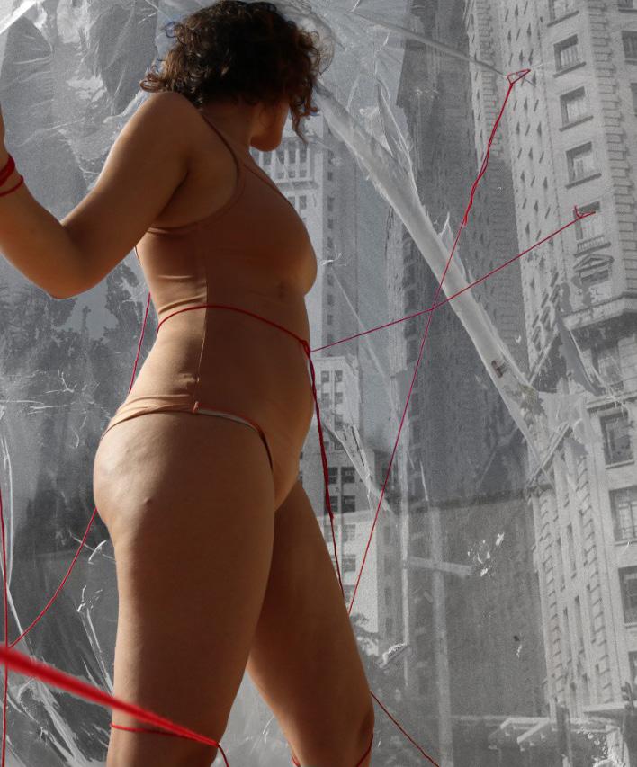 Um instalação-performance bolha que reflete as ambivalências do corpo feminino no meio urbano.