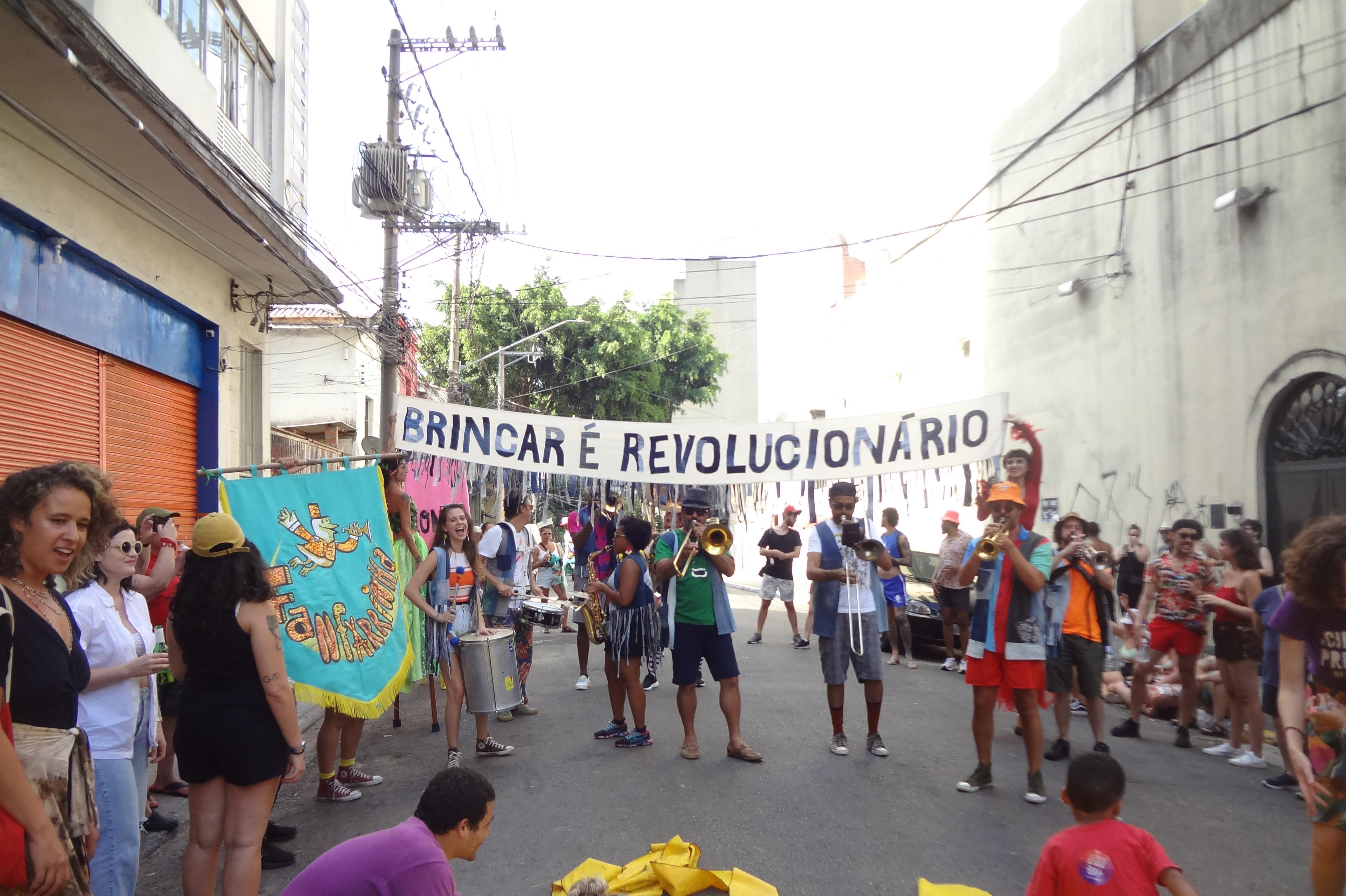 Cada criança criou sua própria personagem monstro e depois fomos ocupar com muita alegria e música em um cortejo coletivo