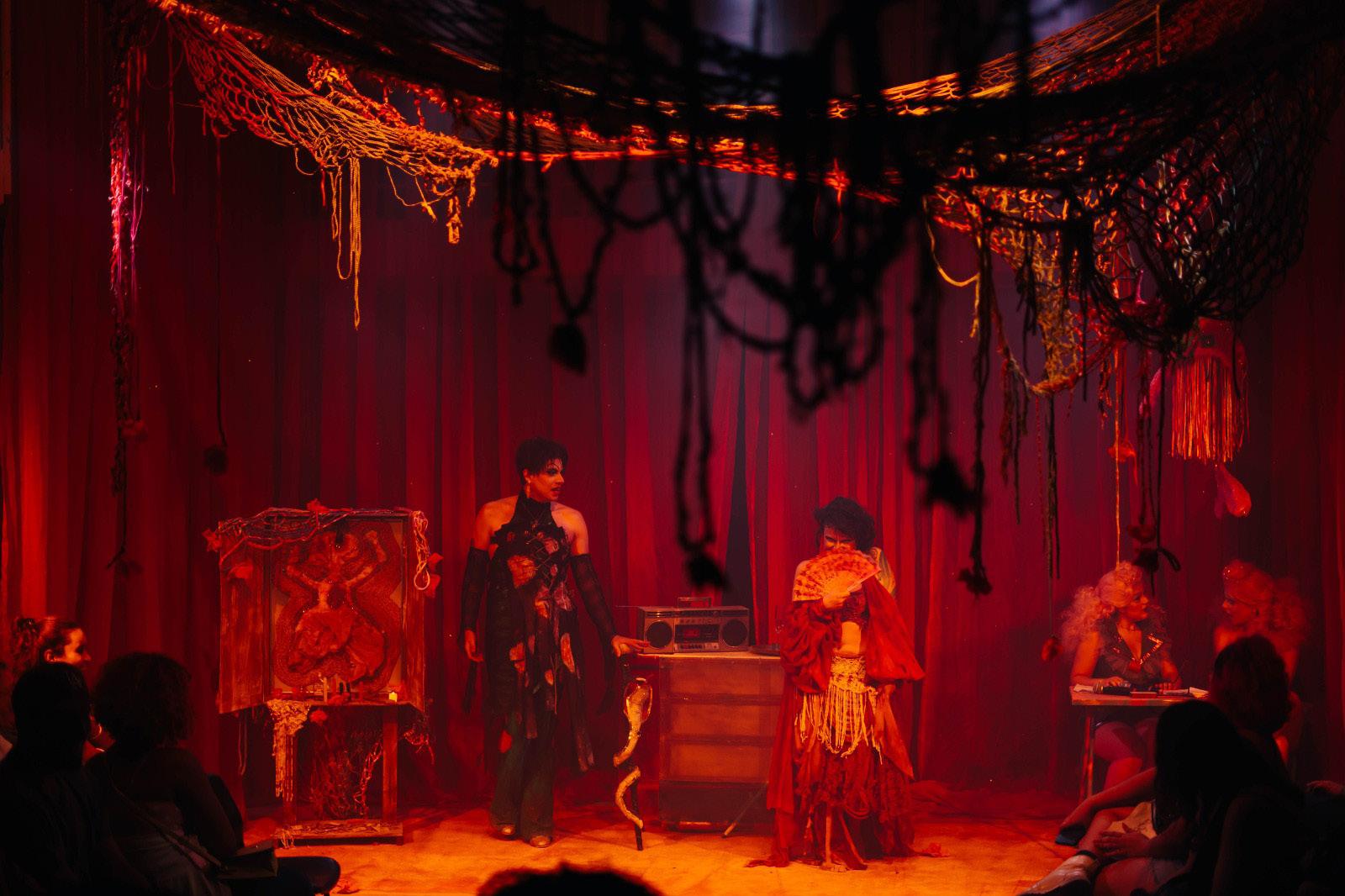 Desenvolvimento de conceito visual, projeto técnico e execução de espaços cenográficos, instalações artísticas e performáticas