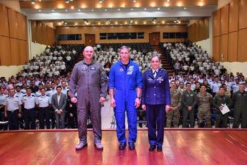 Los asistentes al evento académico agradecieron públicamente la opor tunidad que les brindó la Escuela Militar de Aviación de participar y vincularse a la Sema na Universitaria EMAVI 2022 en homenaje a la Semana Mundial del Es pacio, un encuentro que sin duda alguna enrique ce sus conocimientos y contribuye en la forma ción profesional y perso nal de cada uno. Al finalizar la visita, el astronauta Michael Ho pkins se refirió a la im portancia del Centro de Operaciones Espaciales de la Fuerza Aérea Co lombiana que es opera do directamente desde la ciudad de Cali, y felicitó a la Institución por este gran paso y por cumplir 103 años al servicio de todos los colombianos.