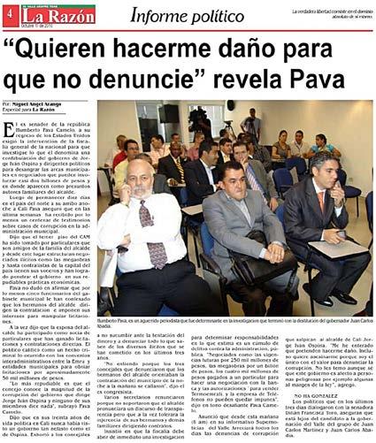 Más tarde que tempra no la fiscalía vinculará al proceso penal al al calde Ospina porque es el presidente de la junta directiva de empresas municipales y también porque un contrato por una suma tan alta debió tener su bendición.