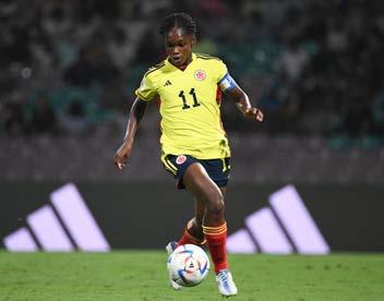 Colombia arrancó con todo en los primeros minu tos del partido. Un remate desviado al minuto 2 por parte de Linda Caicedo y posteriormente, una falta sobre Muñoz al 4’, que fue ejecutada por la 10 de Co lombia, Gabriela Rodríguez, y que casi se va al fondo de la portería defendida por la española Sofía, fueron el aviso de una selección ‘cafe tera’ que salió mentalizada en asegurar el marcador.