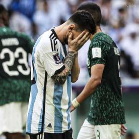 Renard. Los gauchos se pu sieron arriba con un penal de VAR que aprovechó Mes si para marcar su séptimo tanto en cinco mundiales, todos ellos ante rivales de menor cuantía. Pero el gol, no opacó las intenciones de los árabes que fueron hora dando una defensa que tiene demasiados inconvenien tes, escondidos por resulta dos ficticios y comentarios acomodados de una prensa lisonjera y harto lambona. En el complemento, hubo diez minutos de horror para la albiceleste. Primero Al shehri se llevó a pasear la endeble marca de Cristian Romero y derrotó al bocón
