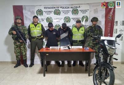 gurados como presuntos responsables de portar un arma de fuego y munición de diferente calibre cuando se movilizaban en una moto cicleta por el barrio Bolívar de Alcalá, Valle.