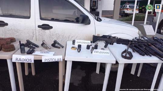 tipo arnés, un brazalete con logotipo del comando coordinador de Occidente – frente Jaime Martínez, 2 radios de comunicación satelital, 2 simcard y una licencia de conducción de un hombre quien