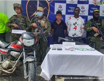 la zona, para que pagaran una cuota de extorsión representada en teléfonos celulares, dinero y otros elementos personales. Las unidades del Gaula montaron un retén de control y verificación y cuando los imputados llegaron hasta donde se encontraban los uniformados, decidieron eludir los controles y emprendieron la fuga.