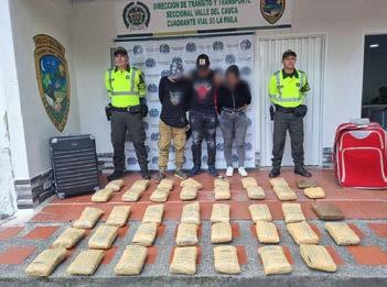 hombres y una mujer y la aprehensión de una menor de edad, quienes se movilizaban como pasajeros en el vehículo tipo bus de servicio público, afiliado a una empresa intermunicipal, transportando 50 kilogramos de marihuana envueltos en 39 paquetes y distribuidos en dos maletas grandes, quienes manifiestan que cubrían la ruta Tuluá - Cartago.